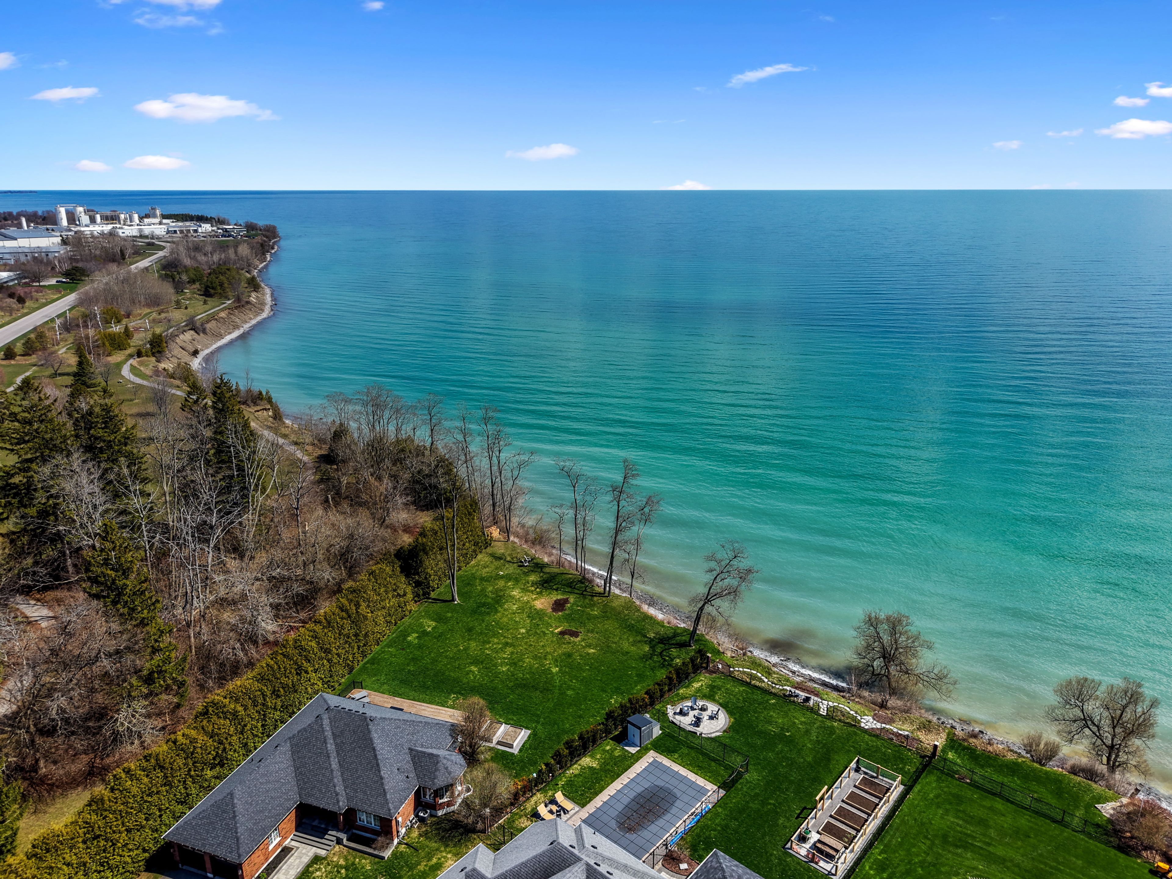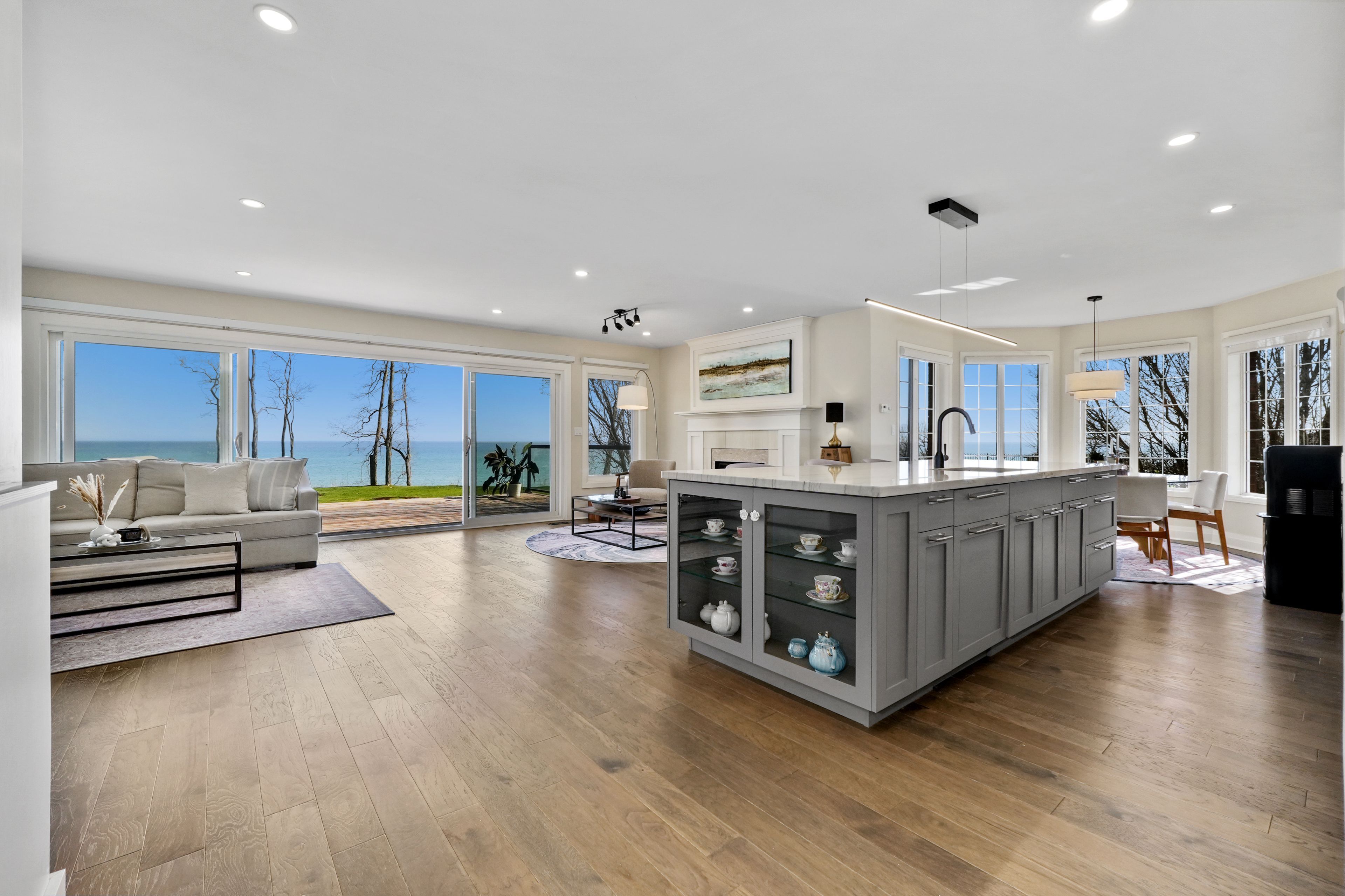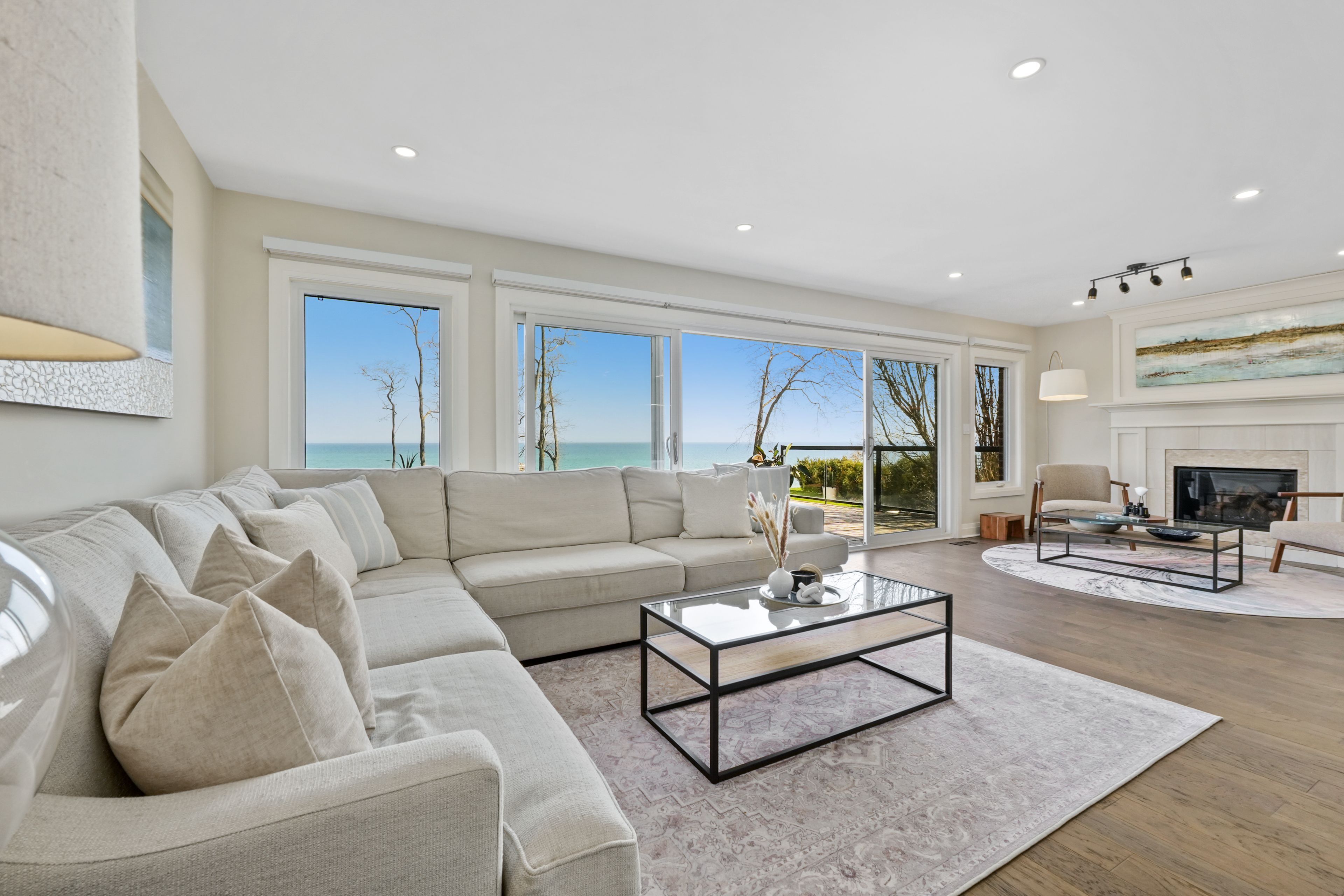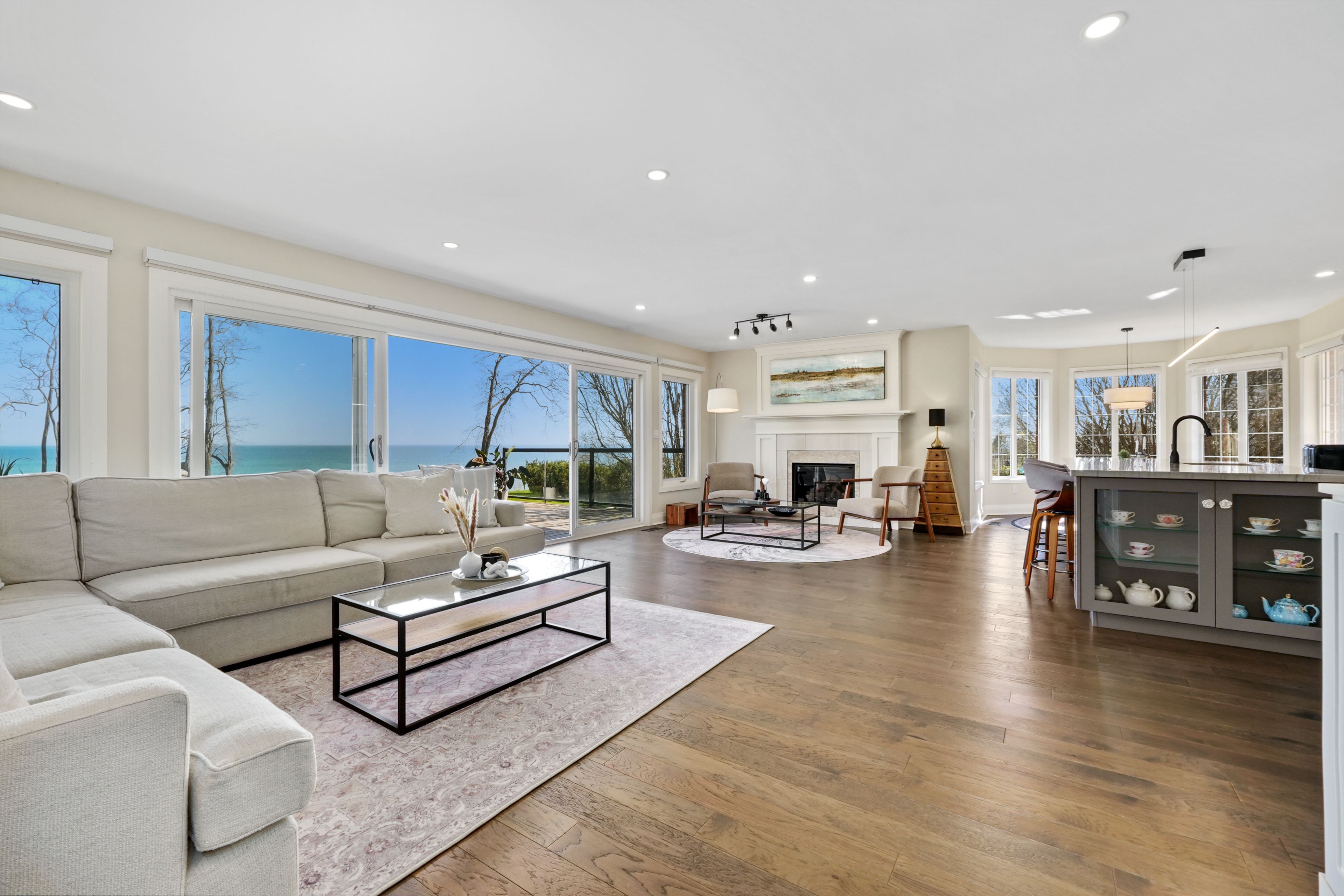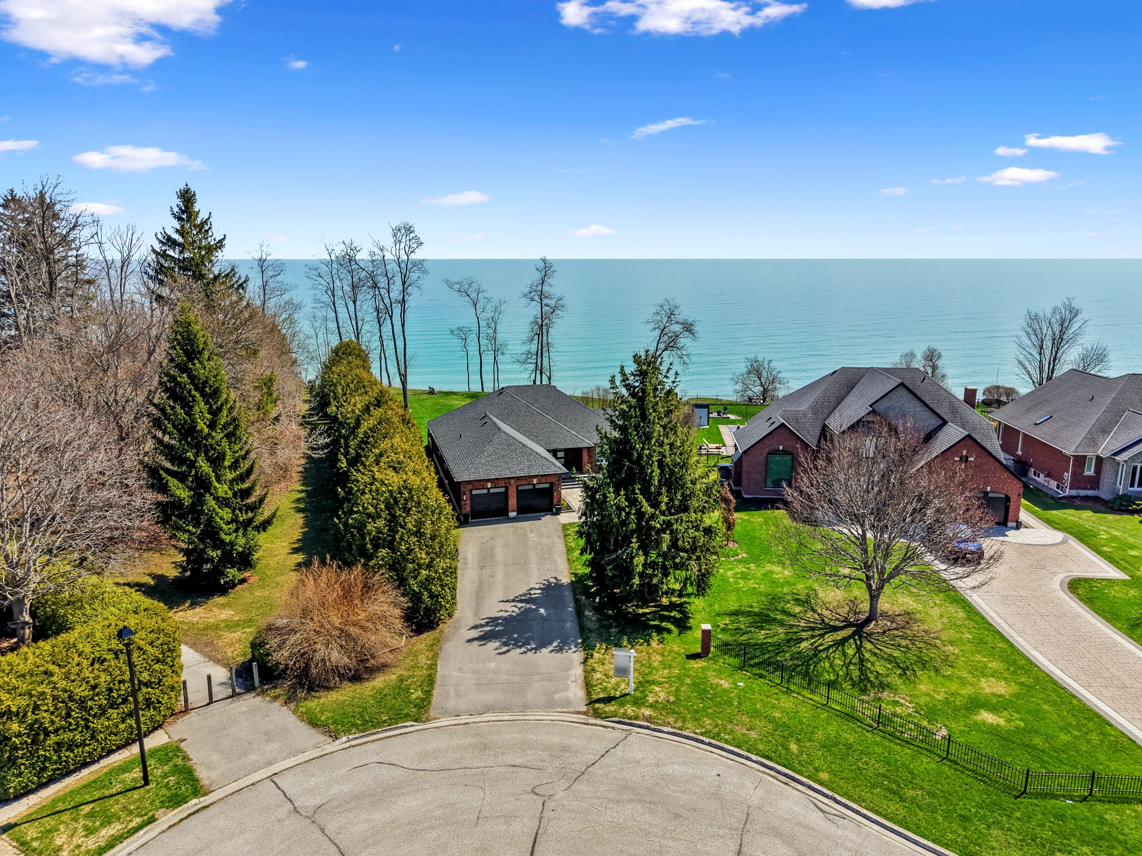 Perched at the absolute eastern edge of Cobourg's waterfront, this home offers a rare duality: the convenience of town living with the profound silence of the open coast. As the final residence on the shoreline, your eastern horizon is defined only by miles of undisturbed nature, offering an elevated level of privacy and an uninterrupted views. Thoughtfully designed with combined living space of 3,287 sq ft, this home blends luxury and lifestyle. Step into the bright, open foyer where breathtaking panoramic water views immediately command attention. The living room is a showpiece, featuring a wall of windows that fully opens to create a seamless indoor-outdoor living experience, complemented by a fireplace, and built-in media unit. The kitchen offers a sleek, modern aesthetic with a 10.5' island, breakfast bar, contemporary pendant lighting, discreet built-in fridge, wall oven, and induction cooktop. The sun-filled dining area is wrapped in windows, creating an inviting space for everyday living. The oversized primary suite is a private retreat with its own walkout, dual closets, and a spa-inspired ensuite featuring a soaker tub overlooking the lake, double vanity, and separate glass shower. An additional bedroom, office with built-ins, a full bathroom, and a functional mudroom with direct access to the attached double garage complete the main level. The lower level is designed for both relaxation and entertainment, offering a spacious rec room with games nook, immersive theatre room, gym, 2 bedrooms, bathroom, and a beautifully finished laundry room. Outdoors, the property truly shines with a 48' x 16' deck capturing expansive water views, a generous private yard with raised garden beds, and inviting green space that enhances the peaceful waterfront setting. Located just minutes from downtown Cobourg, Marina, local markets, and schools, with convenient access to Highway 2 and the 401, this is a rare opportunity to experience luxury waterfront living at its finest.