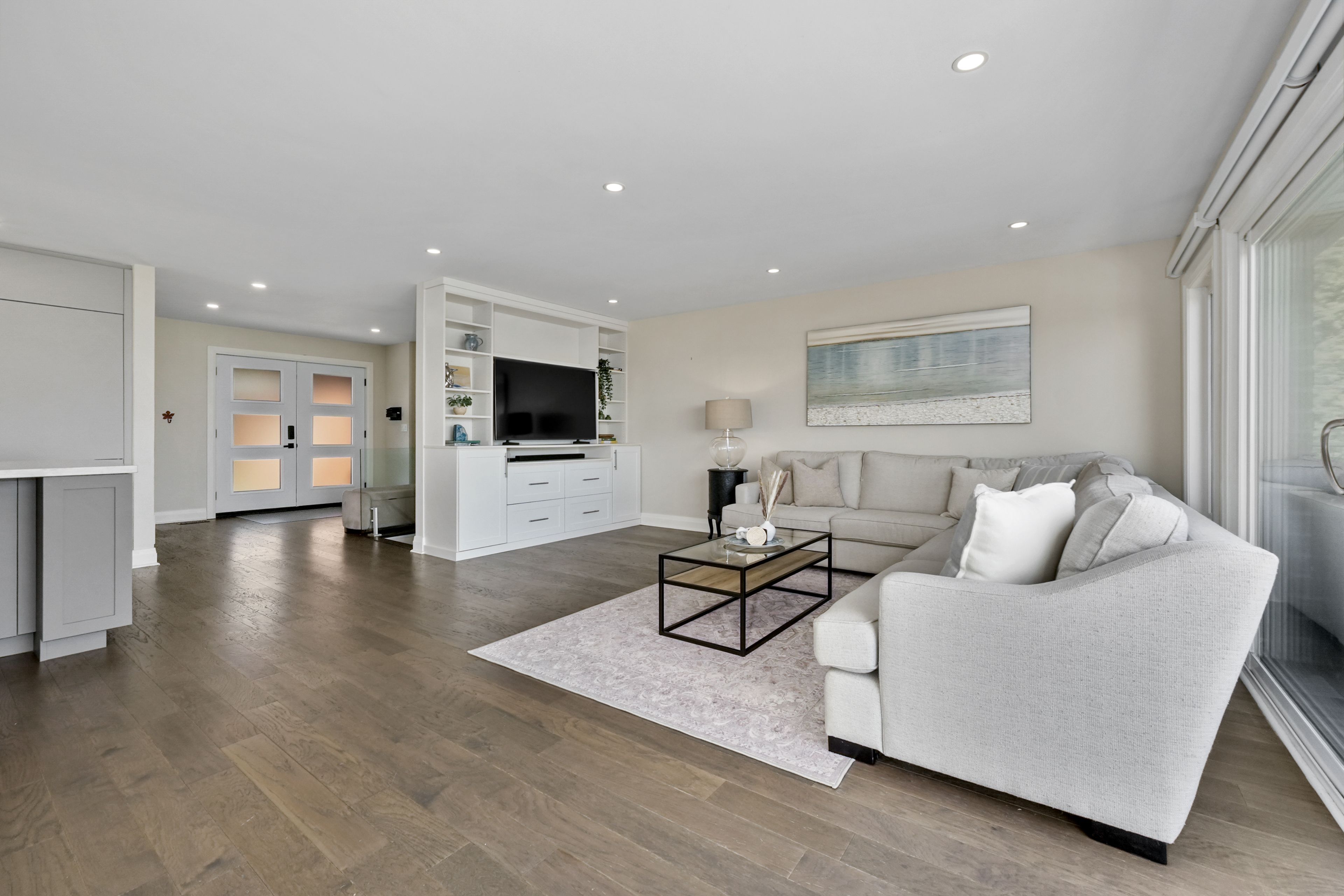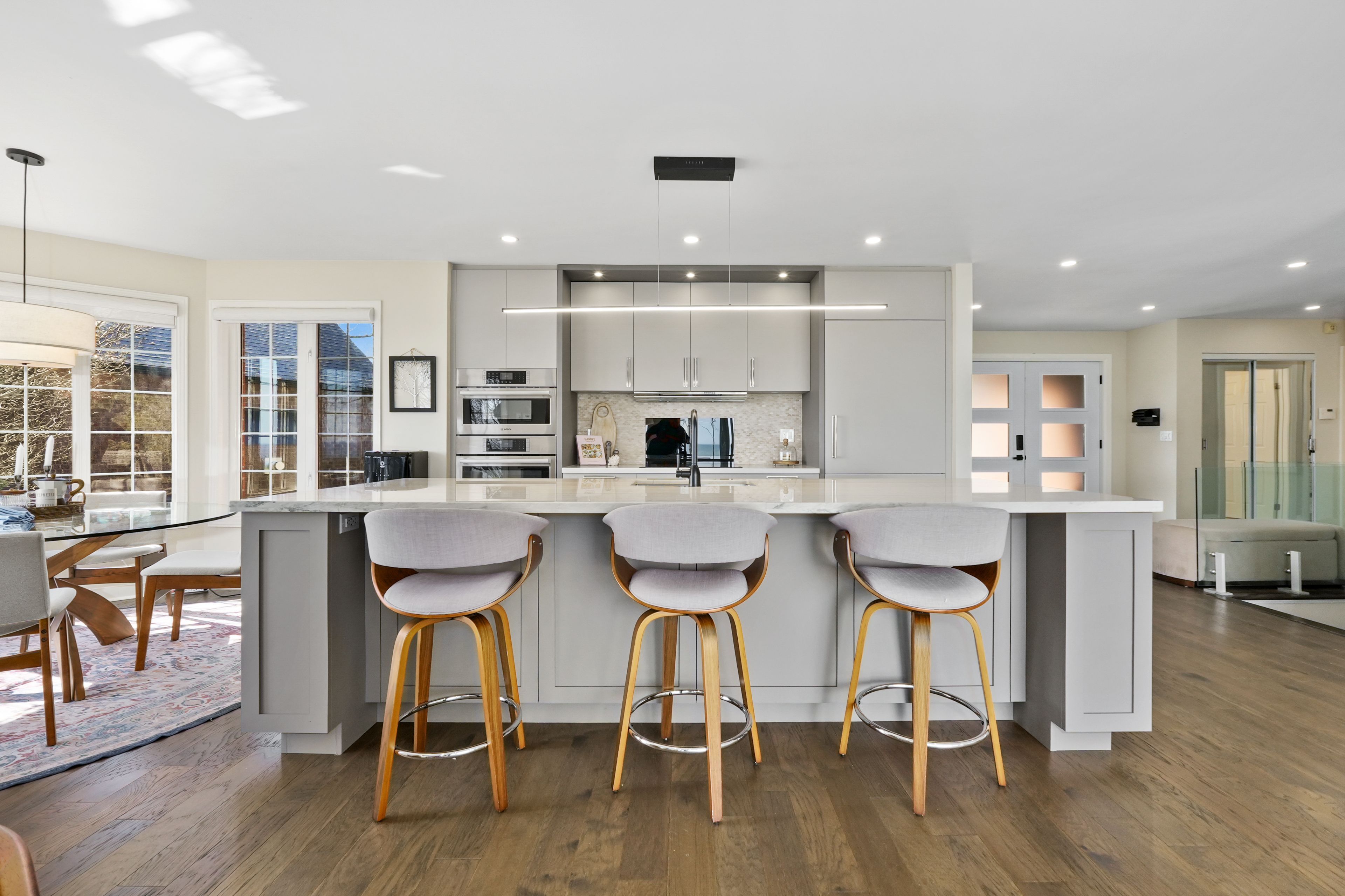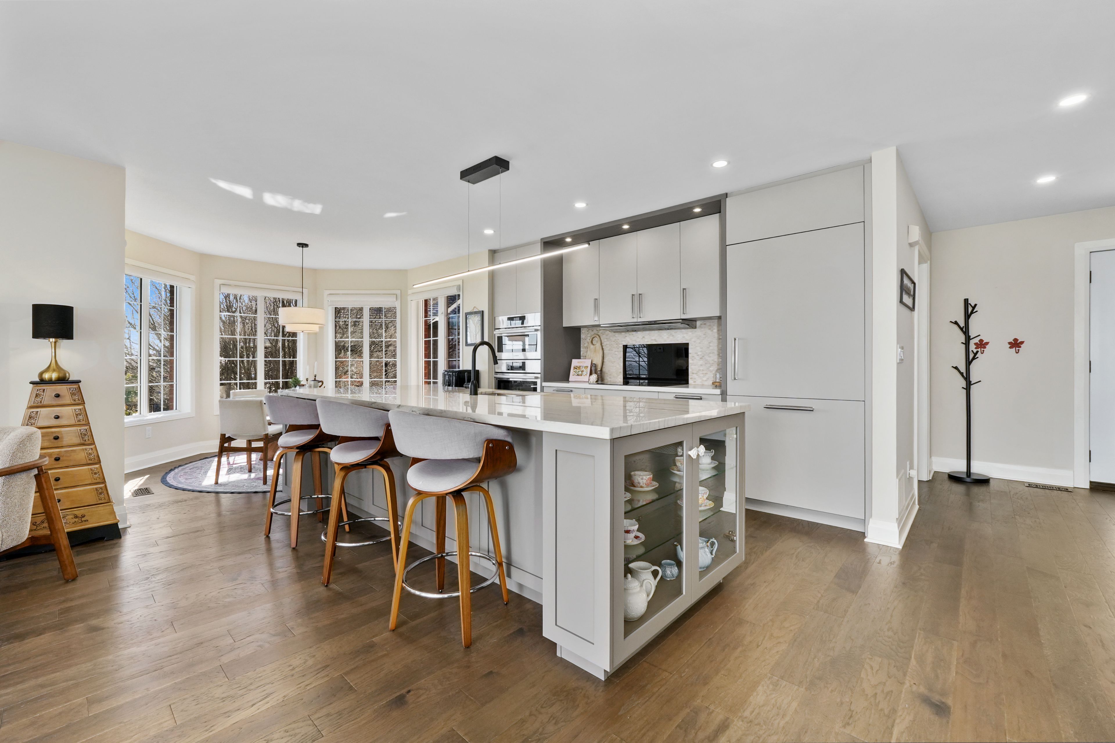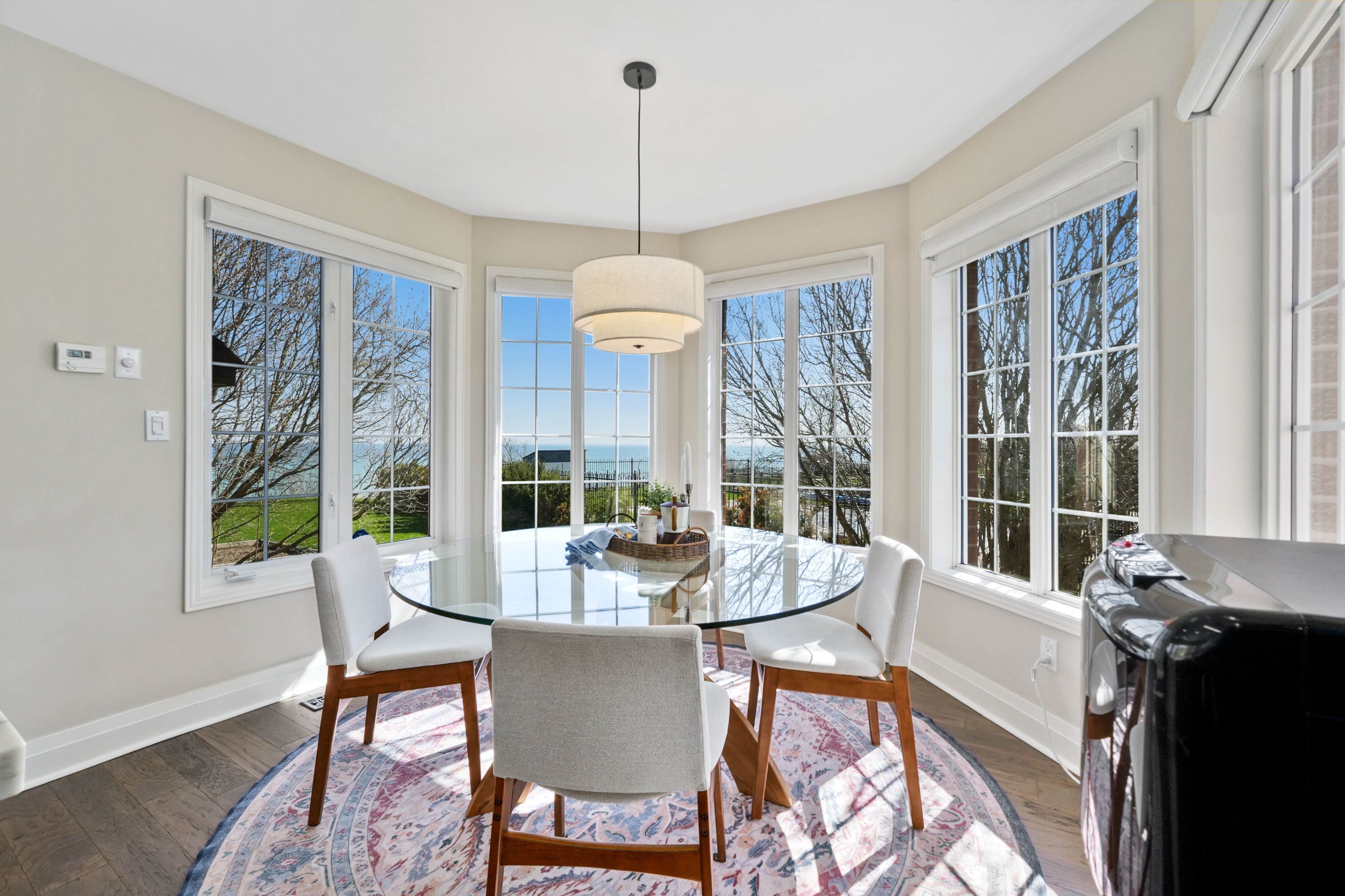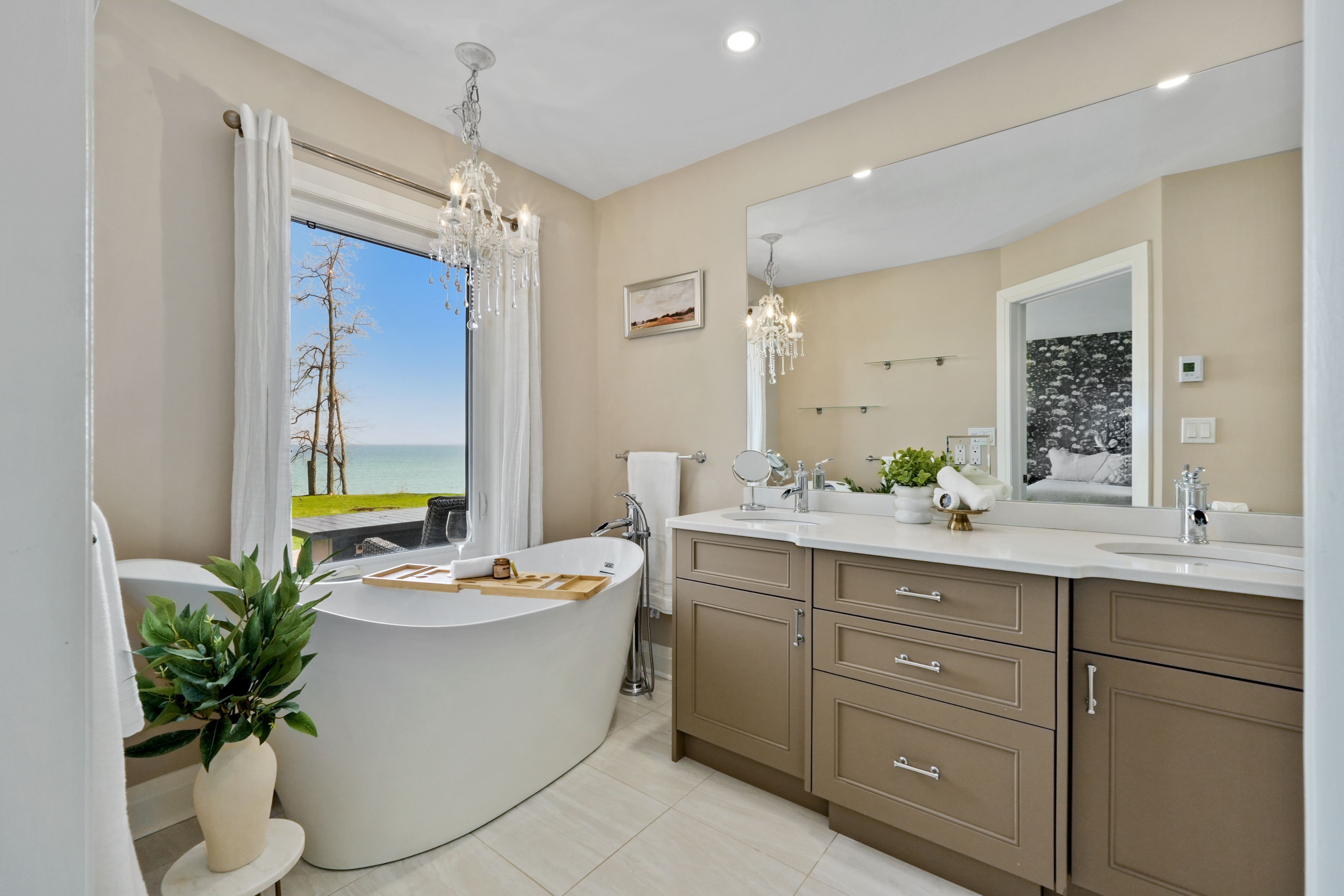 Perched at the absolute eastern edge of Cobourg's waterfront, this home offers a rare duality: the convenience of town living with the profound silence of the open coast. As the final residence on the shoreline, your eastern horizon is defined only by miles of undisturbed nature, offering an elevated level of privacy and an uninterrupted views. Thoughtfully designed with combined living space of 3,287 sq ft, this home blends luxury and lifestyle. Step into the bright, open foyer where breathtaking panoramic water views immediately command attention. The living room is a showpiece, featuring a wall of windows that fully opens to create a seamless indoor-outdoor living experience, complemented by a fireplace, and built-in media unit. The kitchen offers a sleek, modern aesthetic with a 10.5' island, breakfast bar, contemporary pendant lighting, discreet built-in fridge, wall oven, and induction cooktop. The sun-filled dining area is wrapped in windows, creating an inviting space for everyday living. The oversized primary suite is a private retreat with its own walkout, dual closets, and a spa-inspired ensuite featuring a soaker tub overlooking the lake, double vanity, and separate glass shower. An additional bedroom, office with built-ins, a full bathroom, and a functional mudroom with direct access to the attached double garage complete the main level. The lower level is designed for both relaxation and entertainment, offering a spacious rec room with games nook, immersive theatre room, gym, 2 bedrooms, bathroom, and a beautifully finished laundry room. Outdoors, the property truly shines with a 48' x 16' deck capturing expansive water views, a generous private yard with raised garden beds, and inviting green space that enhances the peaceful waterfront setting. Located just minutes from downtown Cobourg, Marina, local markets, and schools, with convenient access to Highway 2 and the 401, this is a rare opportunity to experience luxury waterfront living at its finest.