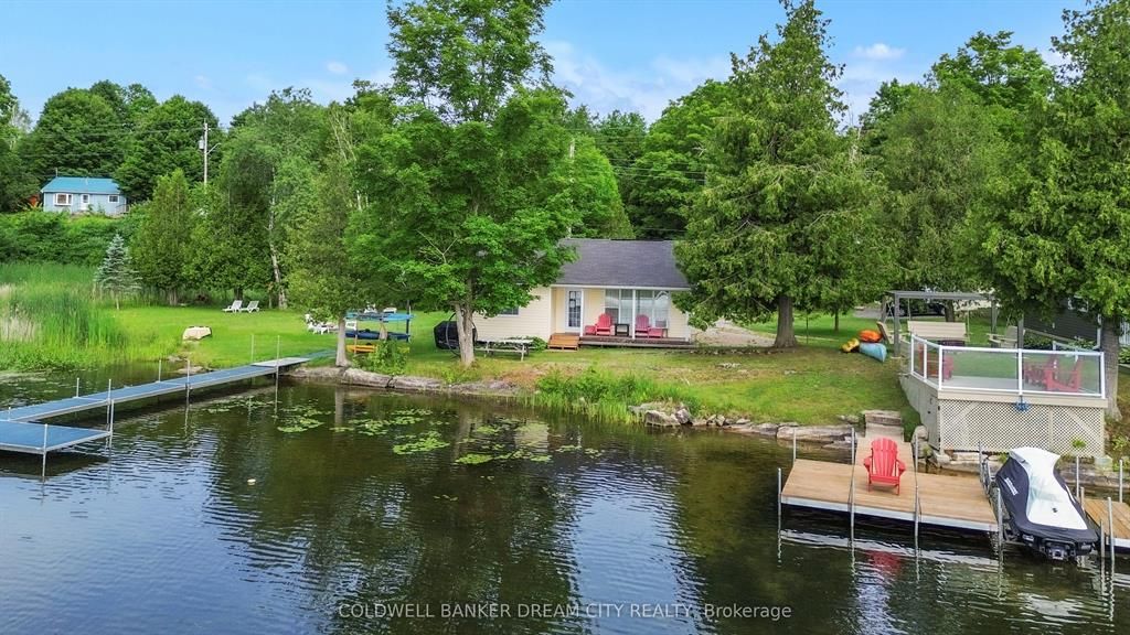 Welcome to Big Clear Lake a truly unique opportunity to own a beautiful waterfront retreat with exceptional versatility and charm. This one-of-a-kind property features both a year-round 3-bedroom Viceroy home (built in 1987) and a cozy 3-season cottage, all set on a private, tree-lined acre. The main home offers just over 1,200 sq. ft. of well-maintained living space with numerous upgrades, including newer windows, a heat pump with AC wall uni, an updated flooring package, and a stunning 3-season sunroom perfect for taking in lake views. There's also a separate entrance to the unfinished basement, ideal for future development or storage. A water purification system services both the house and the cottage. The cottage was thoughtfully updated in 2008 with new siding, windows, and flooring perfect for overflow guests or rental potential. Step outside and enjoy the beautifully landscaped yard, an aluminum dock, and expansive views of the pristine lakefront. Whether youre hosting family gatherings or enjoying peaceful summer evenings by the water, this property is designed for comfort, recreation, and making lasting memories. Meticulously maintained from top to bottom a rare find on Big Clear Lake!!