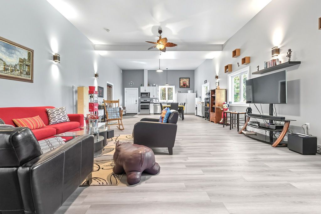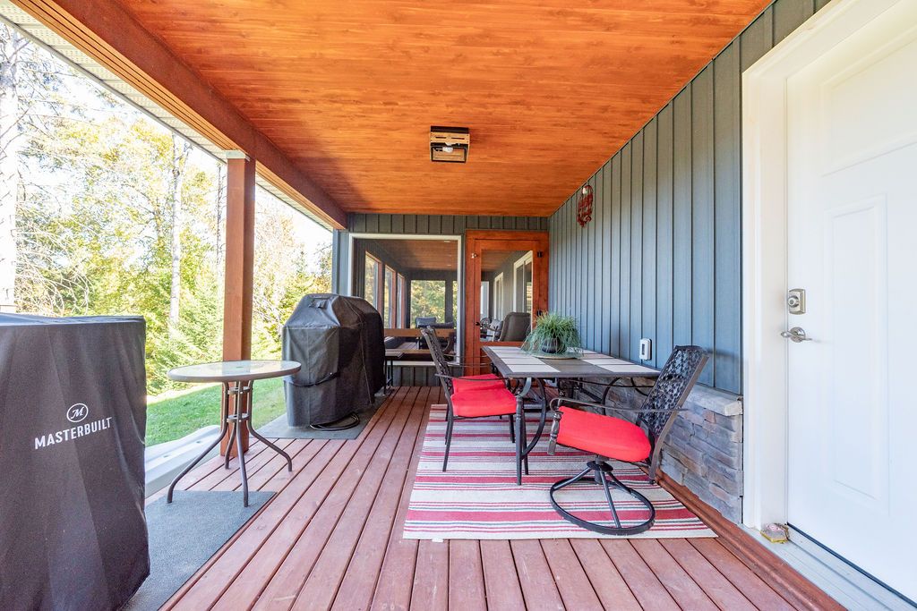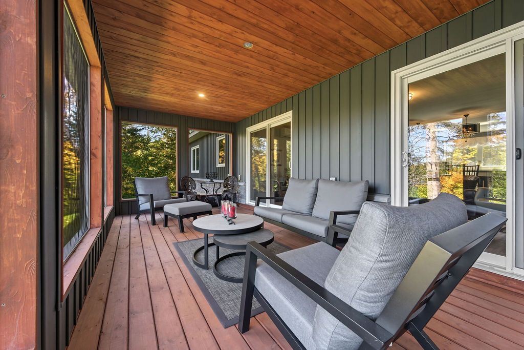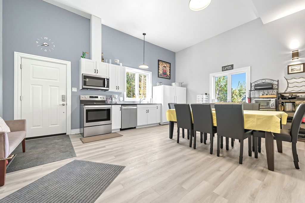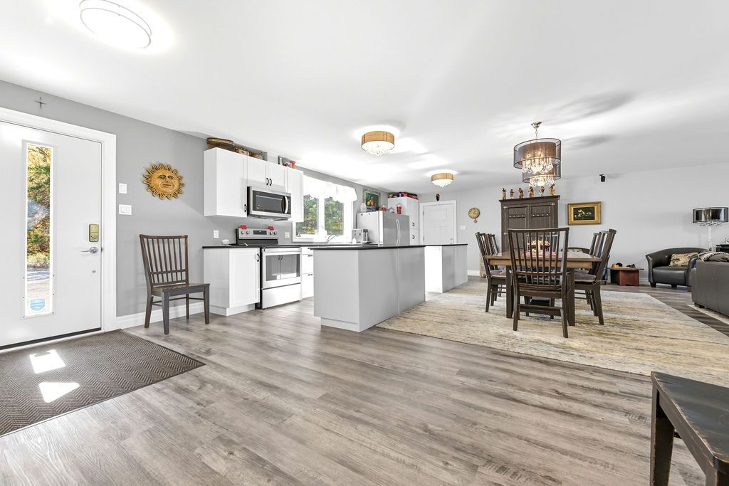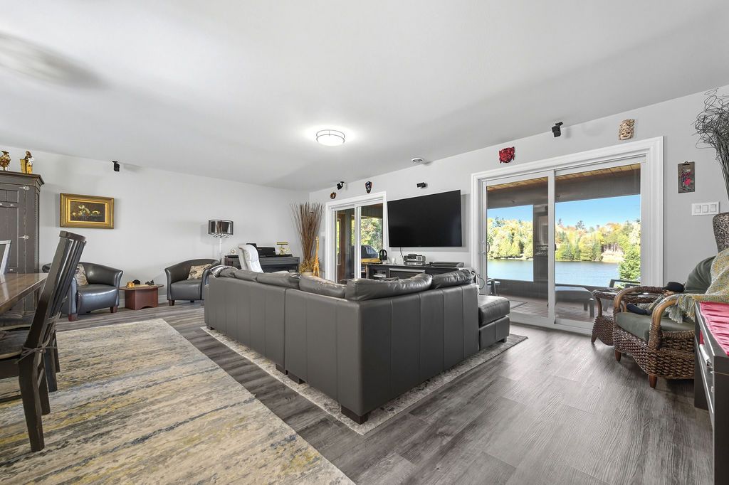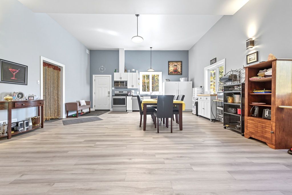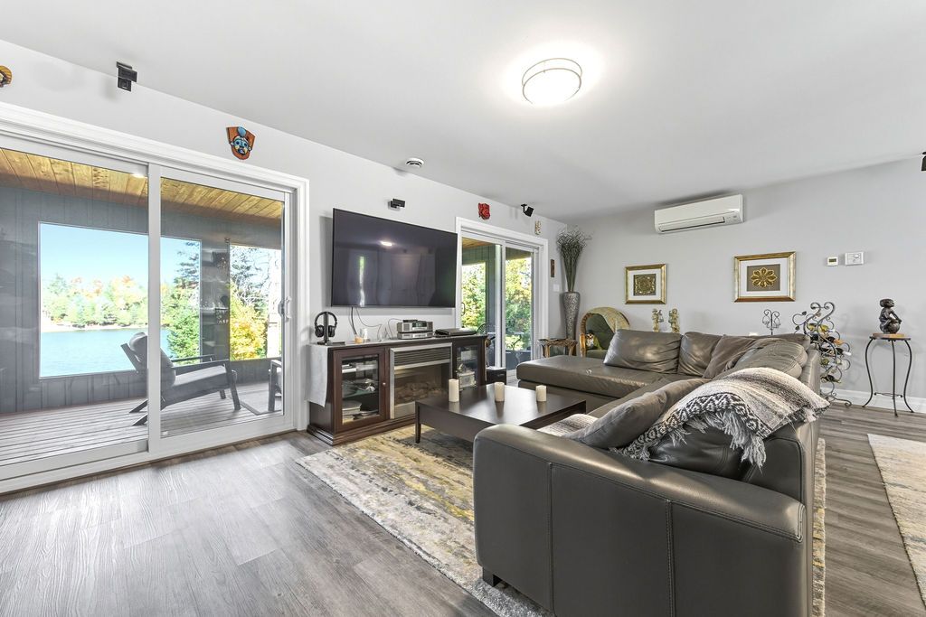 Welcome to 42 Hudson Trail-an extraordinary 3.56-acre waterfront property on the shores of beautiful Kelly's Lake. Offering 200 feet of frontage, including 100 feet of sandy beach and a stone sitting area with fire pit, this one-of-a-kind retreat perfectly blends comfort, versatility, and natural beauty. The property features a well-appointed 2-bedroom, 2-bathroom main home designed with open-concept living in mind. The bright living room, dining area, and kitchen flow seamlessly together, with convenient access to the attached garage and mechanical room. The primary bedroom includes a private ensuite, while a second bedroom and full bath complete the layout. An enclosed porch provides the perfect setting for outdoor dining, and the patio with propane hookup is ideal for creating your own summer kitchen. Adding incredible value is the barndominium-style guest house, offering open-concept living, with a kitchen, dining area, living room and a powder room, with a spacious second level that includes a primary bedroom with ensuite and a large studio-easily convertible into up to three additional bedrooms, making it ideal for extended family or guests. A standout feature is the fully insulated and heated garage/shop with three 10-foot doors, perfect for hobbyists, storage, or workspace needs. Both homes are equipped with in-floor radiant heating, heat pumps for efficient heating and cooling, on-demand generator x 2, the Generac backup systems, ensuring year-round comfort and peace of mind. This unique property is perfectly suited for multigenerational living or hosting large family gatherings. Surrounded by nature, you'll enjoy simple pleasures like lakeside walks, swimming, and kayaking right from your own property. A truly special offering that must be seen to be fully appreciated-don't miss your opportunity to own this exceptional waterfront retreat.