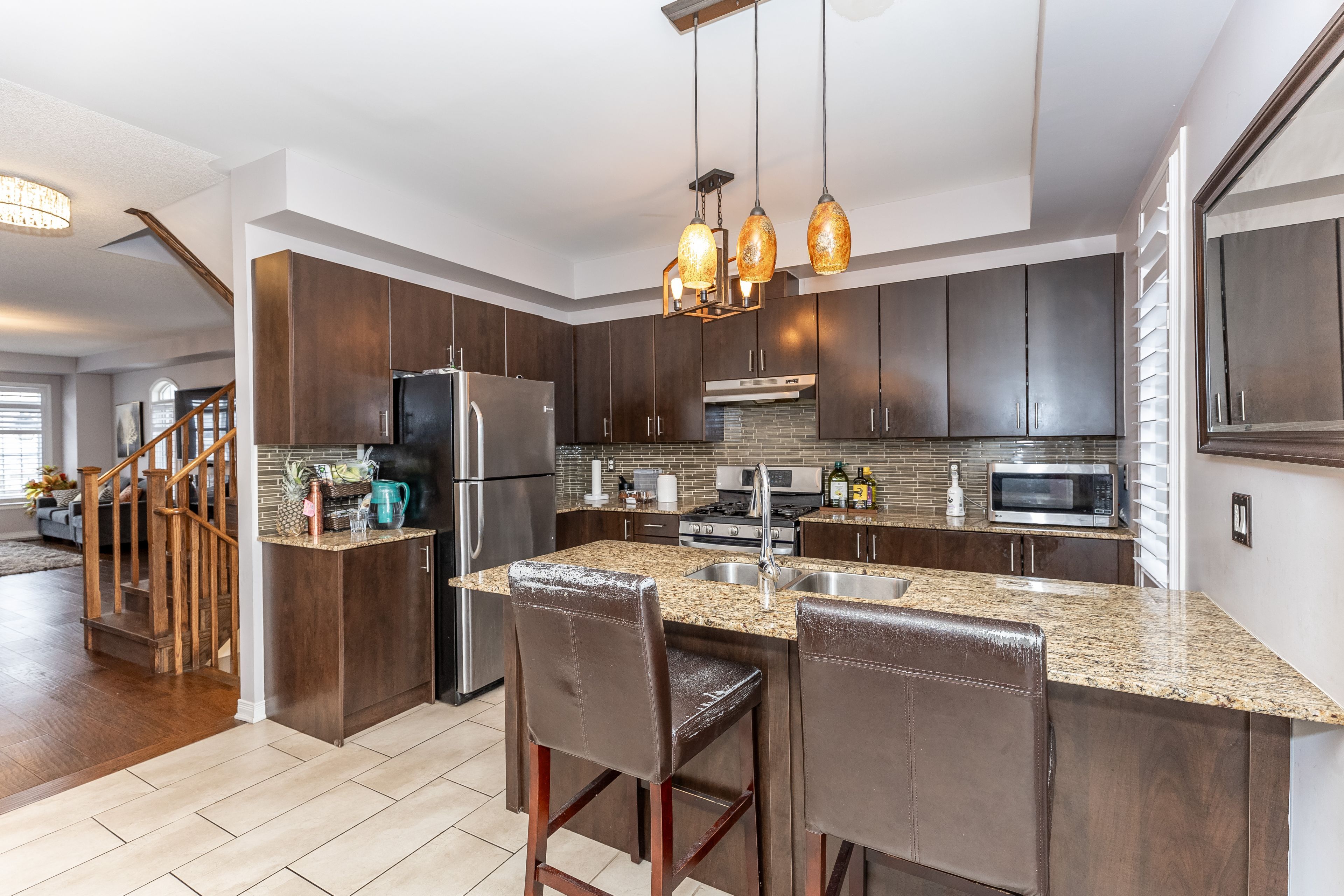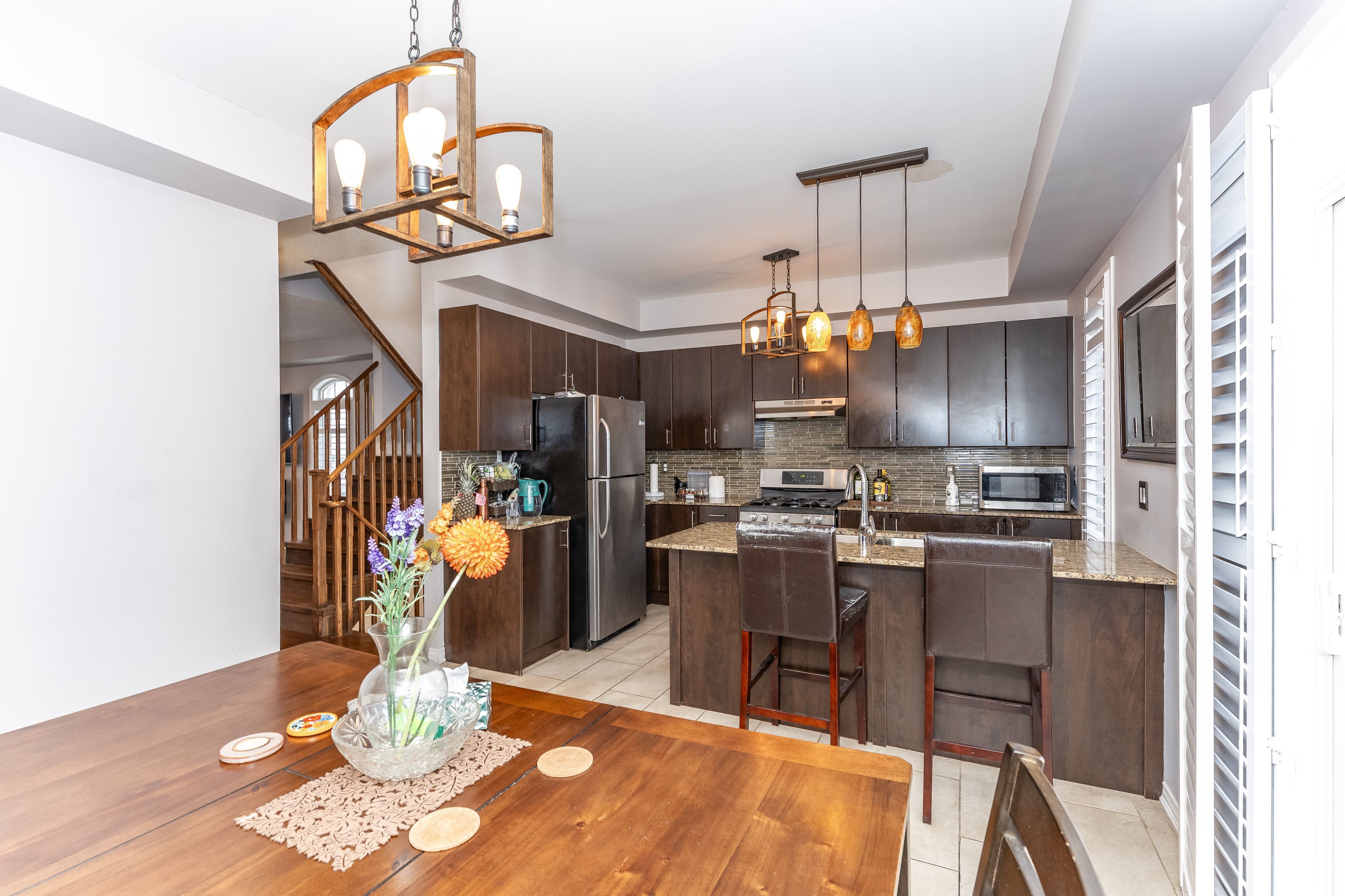 Welcome to Beautiful, Very Well Maintained Executive Spacious 3+1 Bedroom, 5 Bath Freehold Townhouse In Highly Desirable Northeast Ajax, Over 2200 Sqft, This Luxurious Home Has 9Ft Ceilings On 2nd/3rd Floor, Double Car Garage, Hardwood Finishing, Upgraded Light Fixtures, California Shutters,! Spacious Bedrooms, Large Eat-In Kitchen With Breakfast Island With Granite Countertop, Upgraded Cabinets, Backsplash With Walk-Out To Balcony, Rear Garage Entrance, Spacious Bedrooms. Convenient, Safe, & Family Friendly Neighborhood. Walk To School, Shopping, Transit, Parks, Recreation Centre, Walking Trails, 401/412/407.