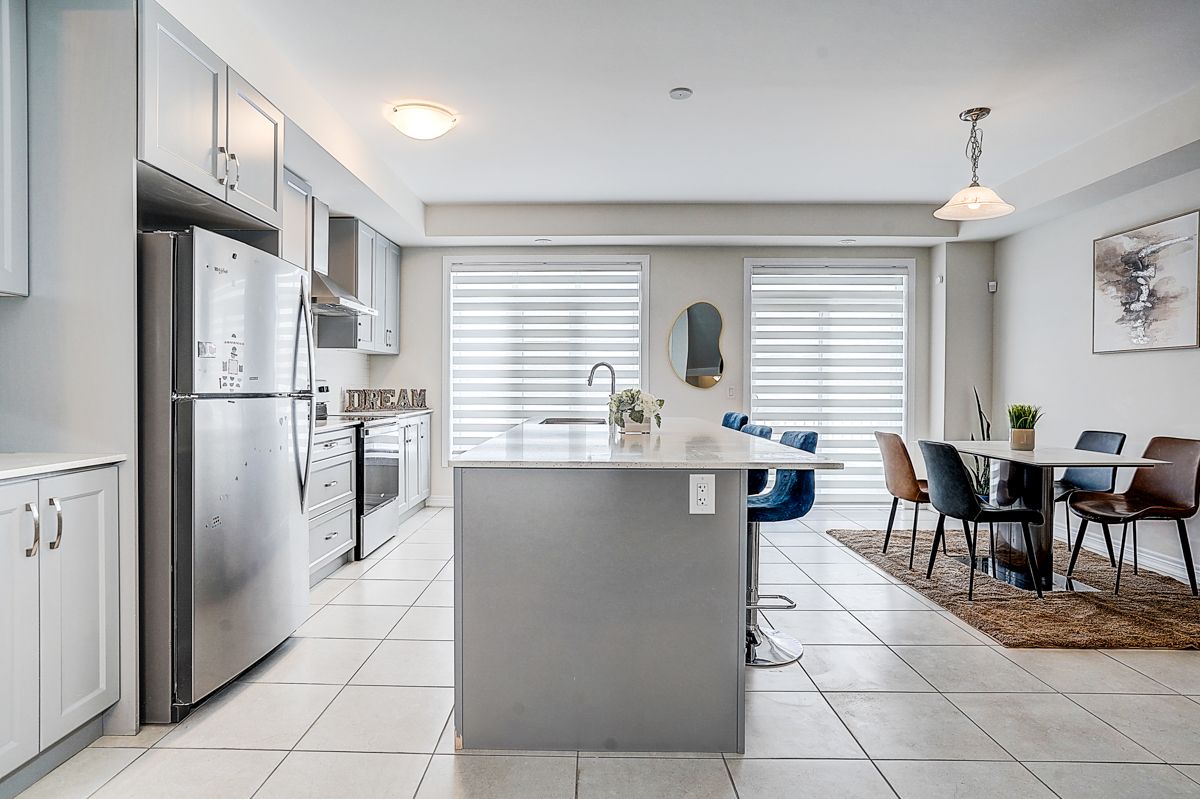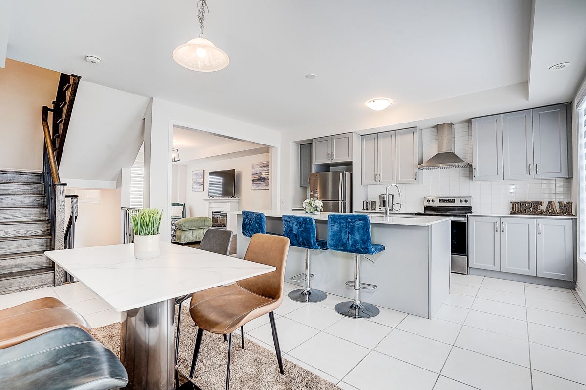 Modern 3-storey FREEHOLD townhome at 19 Morrison Ave, only 2 years new! Features 3 beds, 3 baths, and a bright open-concept layout with a stylish kitchen boasting quartz counters, stainless steel appliances, and ample storage. The primary suite includes a 3pc ensuite, plus two versatile bedrooms for family or office use. Enjoy a large fenced backyard and a private driveway for 2 cars. Prime location near schools, parks, shopping, dining, and Hwy 412. No maintenance fees!