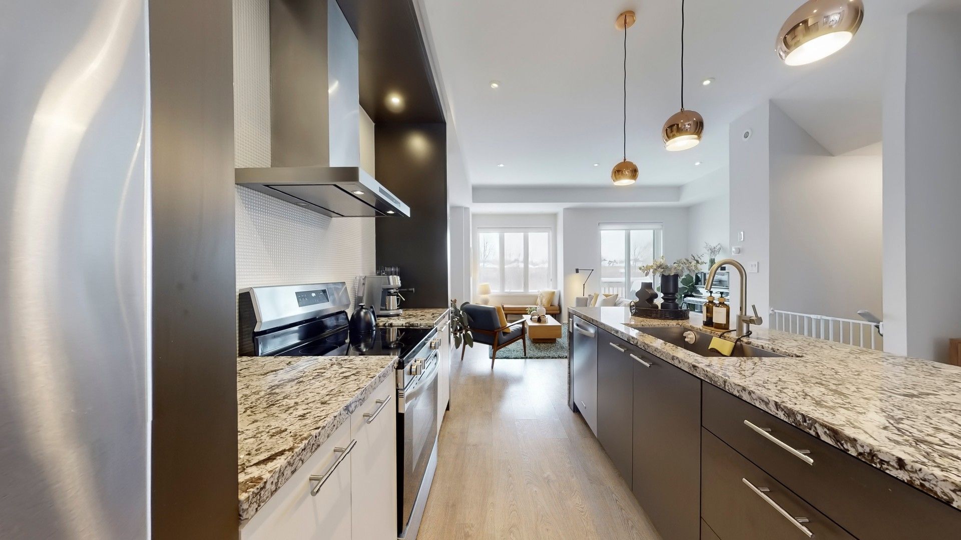 Experience a luxury living in this beautifully designed townhome in Richmond Hill's highly sought-after Doncrest community. Backing onto a peaceful green space, this home is filled with natural light thanks to its large windows and open, airy layout. Offering approx. 2,075 sq. ft. of living space, it features impressive 10-foot ceilings on the main level and 9-foot ceilings on both the upper and lower floors.The main living area is ideal for everyday living and entertaining, anchored by a stunning chef's kitchen with a granite waterfall island, breakfast bar, upgraded appliances, and plenty of storage. Thoughtful finishes like smooth ceilings and pot lights add to the clean, modern feel throughout the home. Step out onto the main-floor deck, complete with a gas line for your BBQ-perfect for easy outdoor entertaining.The primary bedroom is a true retreat, overlooking the green space and complete with a spacious walk-in closet and a spa-inspired 5-piece ensuite. The lower level offers a generous family room with a walk-out to the patio, a separate entrance, and direct access to the garage, which is already equipped with an EV charger. Located just minutes from top-rated schools, parks, Highway 407, VIVA transit, and the GO Train, this home also enjoys close proximity to everyday conveniences including Home Depot, Walmart, Loblaws, Best Buy, Canadian Tire, HomeSense, and more. A rare opportunity to enjoy modern living in one of Richmond Hill's most convenient and established neighbourhoods.