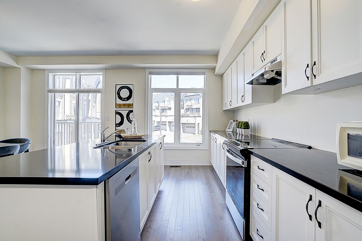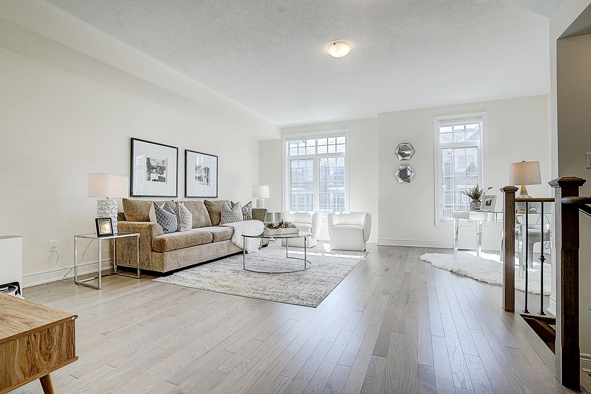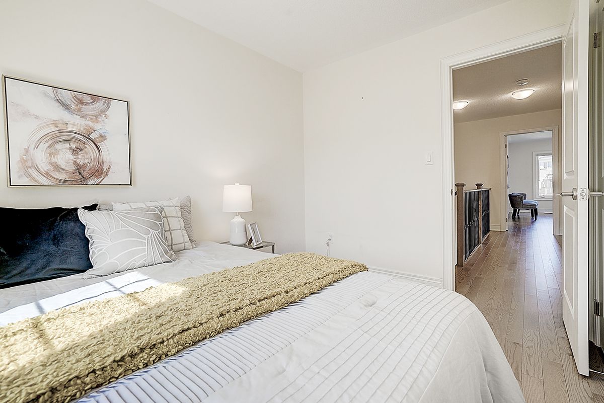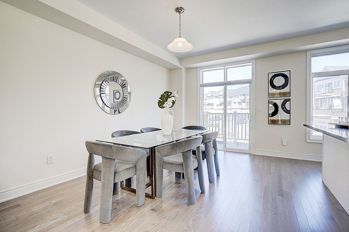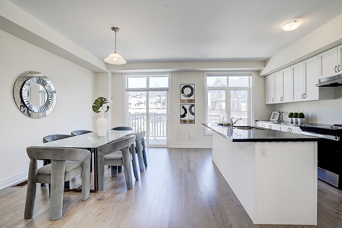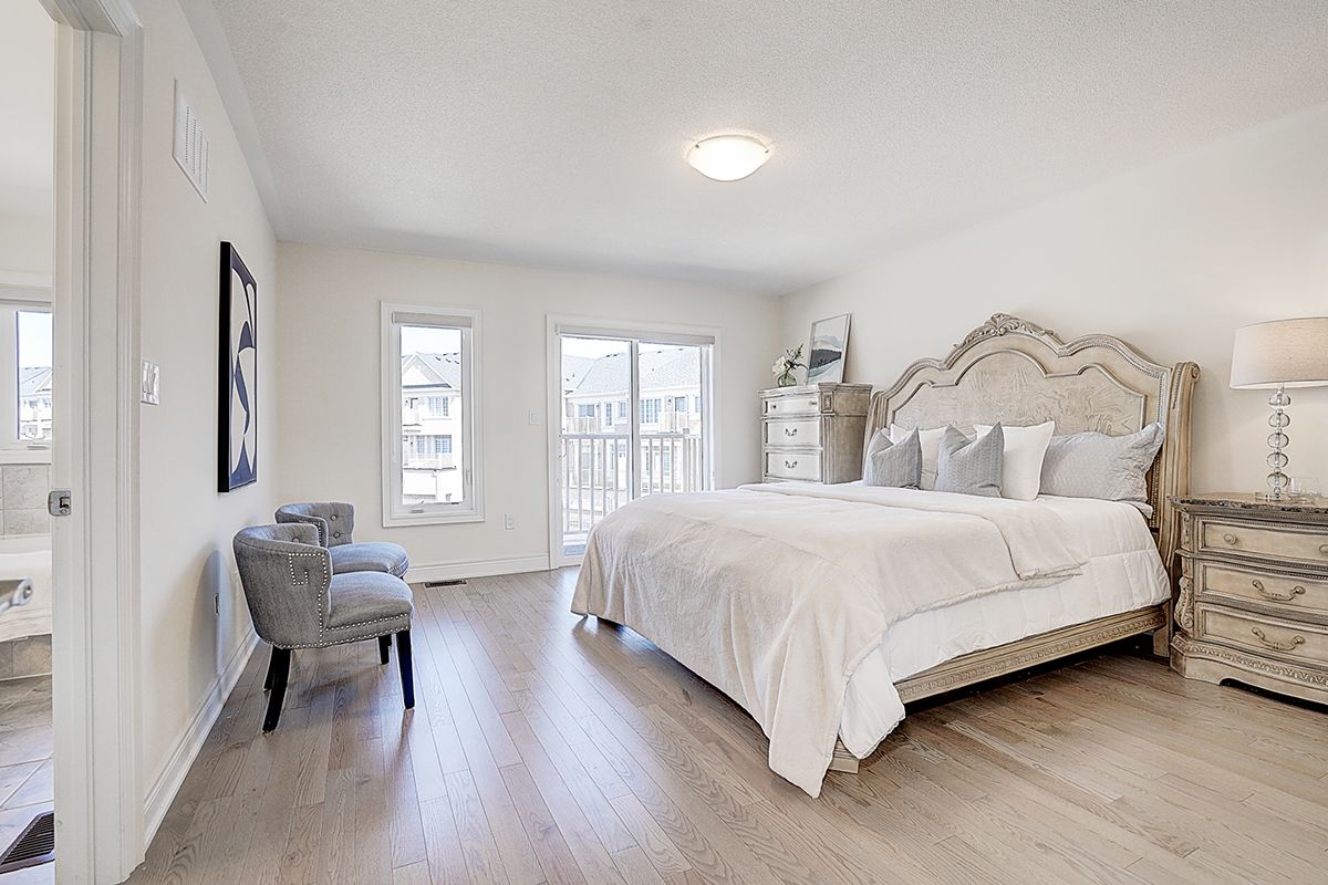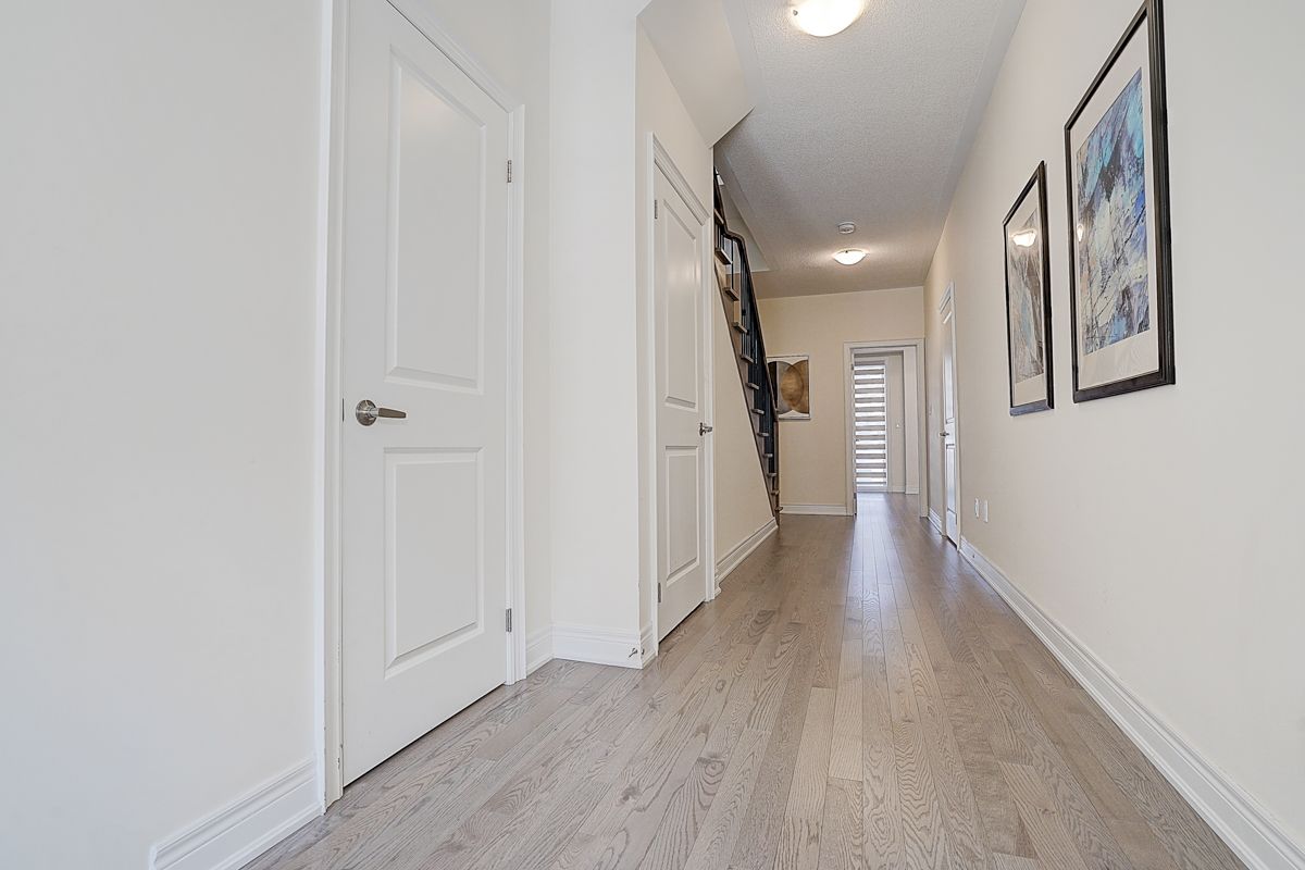 A rare offering of a beautifully upgraded townhouse featuring an impressive 2,400 sq.ft. of functional layout ,Featuring 9-ft ceilings on both the main and second floors, providing a bright and open atmosphere throughout. The main floor includes a bedroom with a full bathroom, ideal for extended family, guests, or a home office setup. Interior highlights include hardwood flooring throughout and a staircase finished with wrought iron pickets. The modern kitchen is equipped with stainless steel appliances, center island, and breakfast area, and opens to a sun-filled family room with large windows, perfect for everyday living and entertaining. The spacious primary bedroom features a 5-piece ensuite and a large walk-in closet. Conveniently located with easy access to Hwy 407 & 401, top-rated schools, parks, golf courses, and a wide range of amenities including major shopping centres, big box retailers, and banks.