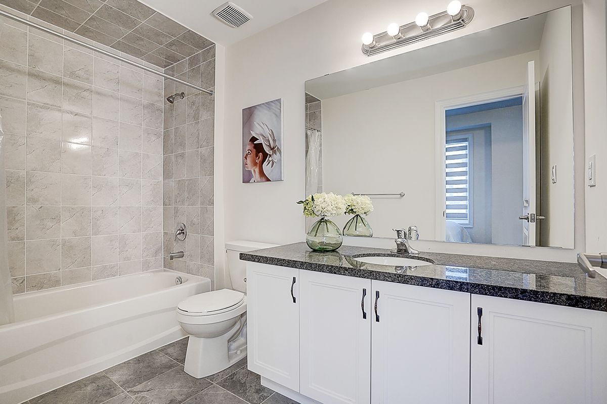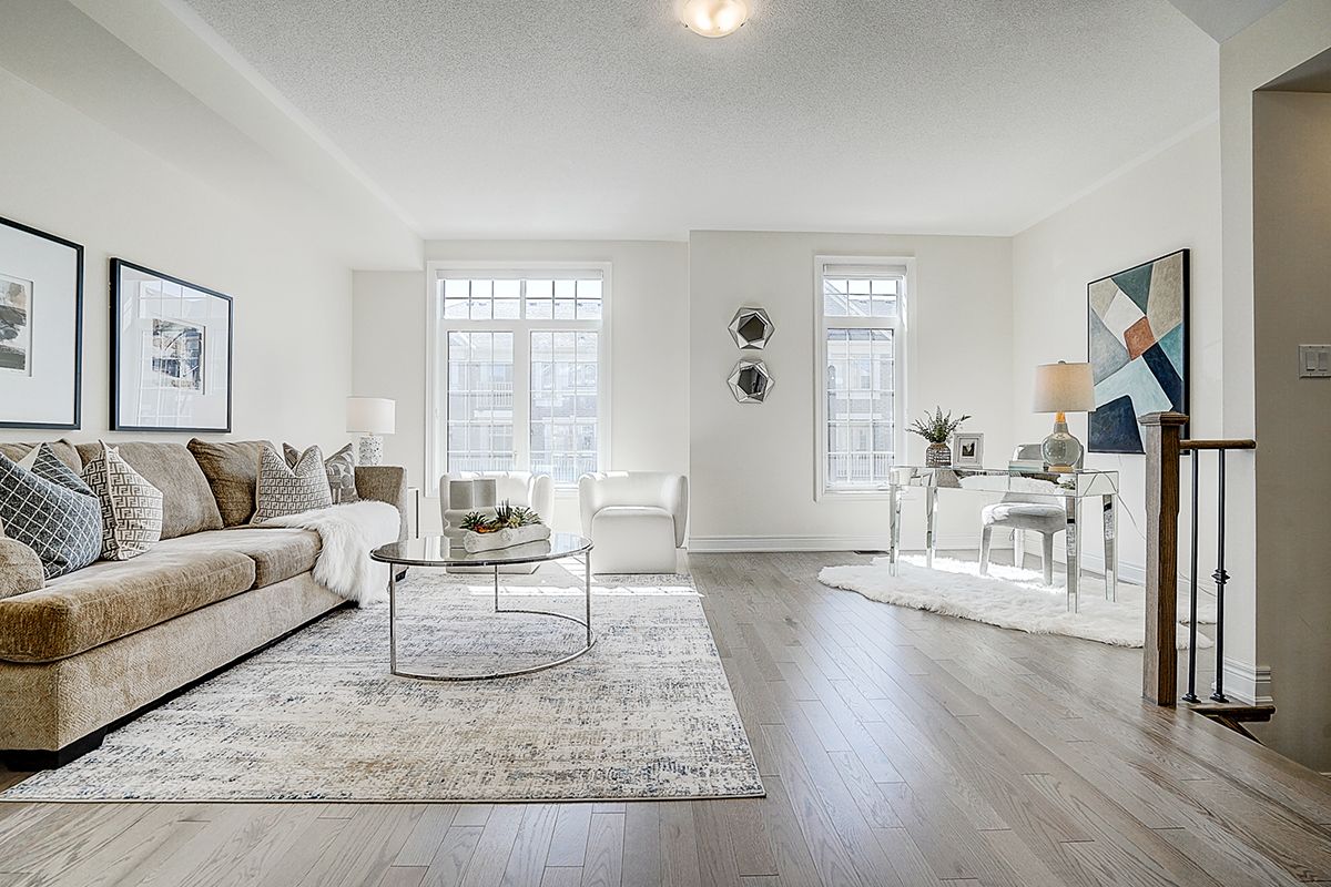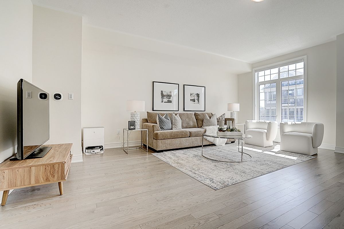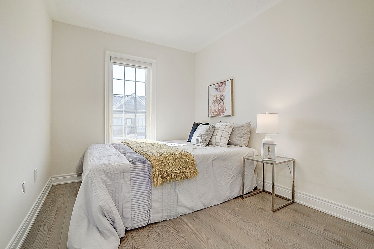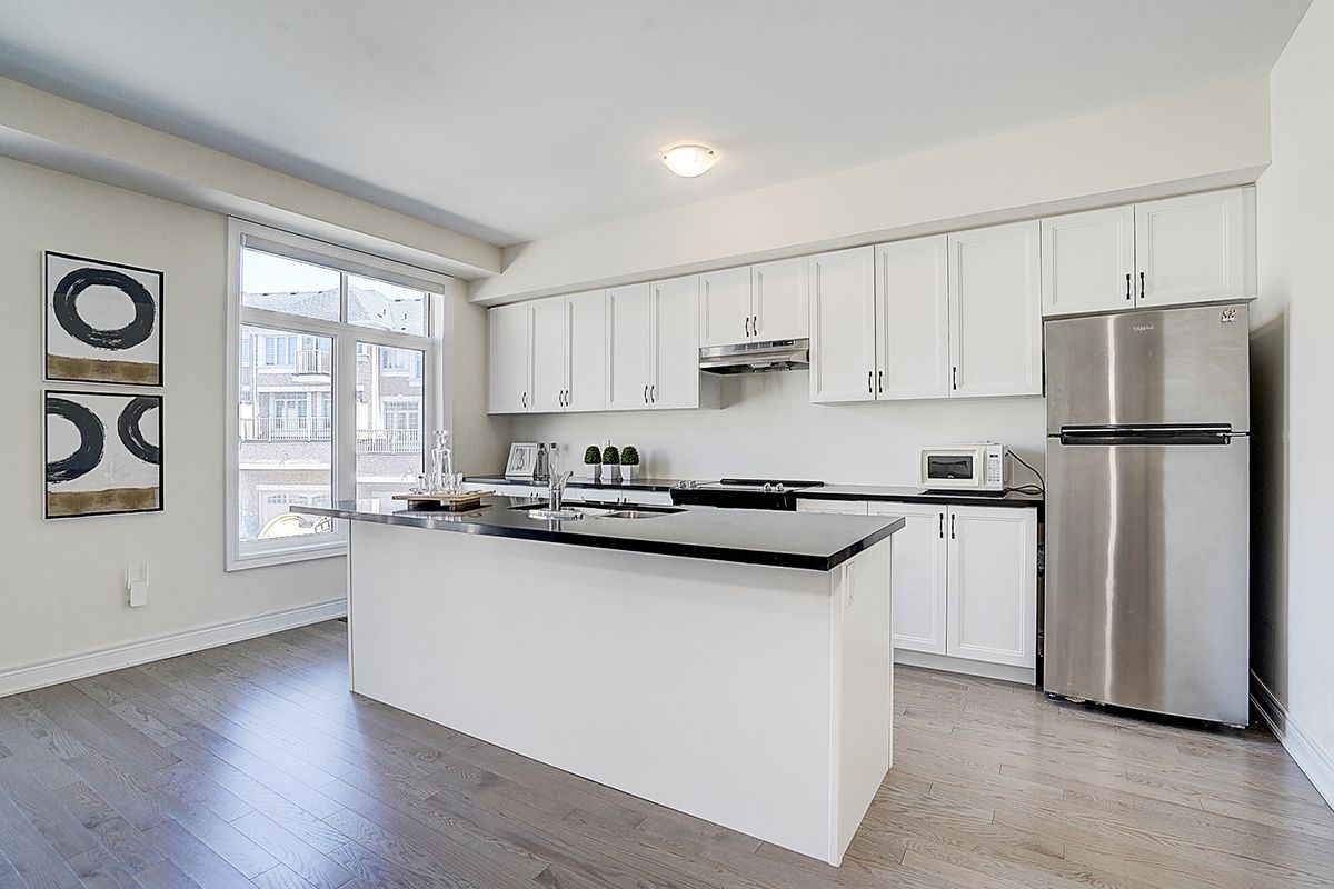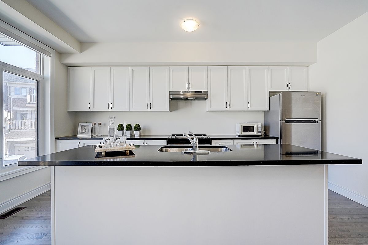 A rare offering of a beautifully upgraded townhouse featuring an impressive 2,400 sq.ft. of functional layout ,Featuring 9-ft ceilings on both the main and second floors, providing a bright and open atmosphere throughout. The main floor includes a bedroom with a full bathroom, ideal for extended family, guests, or a home office setup. Interior highlights include hardwood flooring throughout and a staircase finished with wrought iron pickets. The modern kitchen is equipped with stainless steel appliances, center island, and breakfast area, and opens to a sun-filled family room with large windows, perfect for everyday living and entertaining. The spacious primary bedroom features a 5-piece ensuite and a large walk-in closet. Conveniently located with easy access to Hwy 407 & 401, top-rated schools, parks, golf courses, and a wide range of amenities including major shopping centres, big box retailers, and banks.