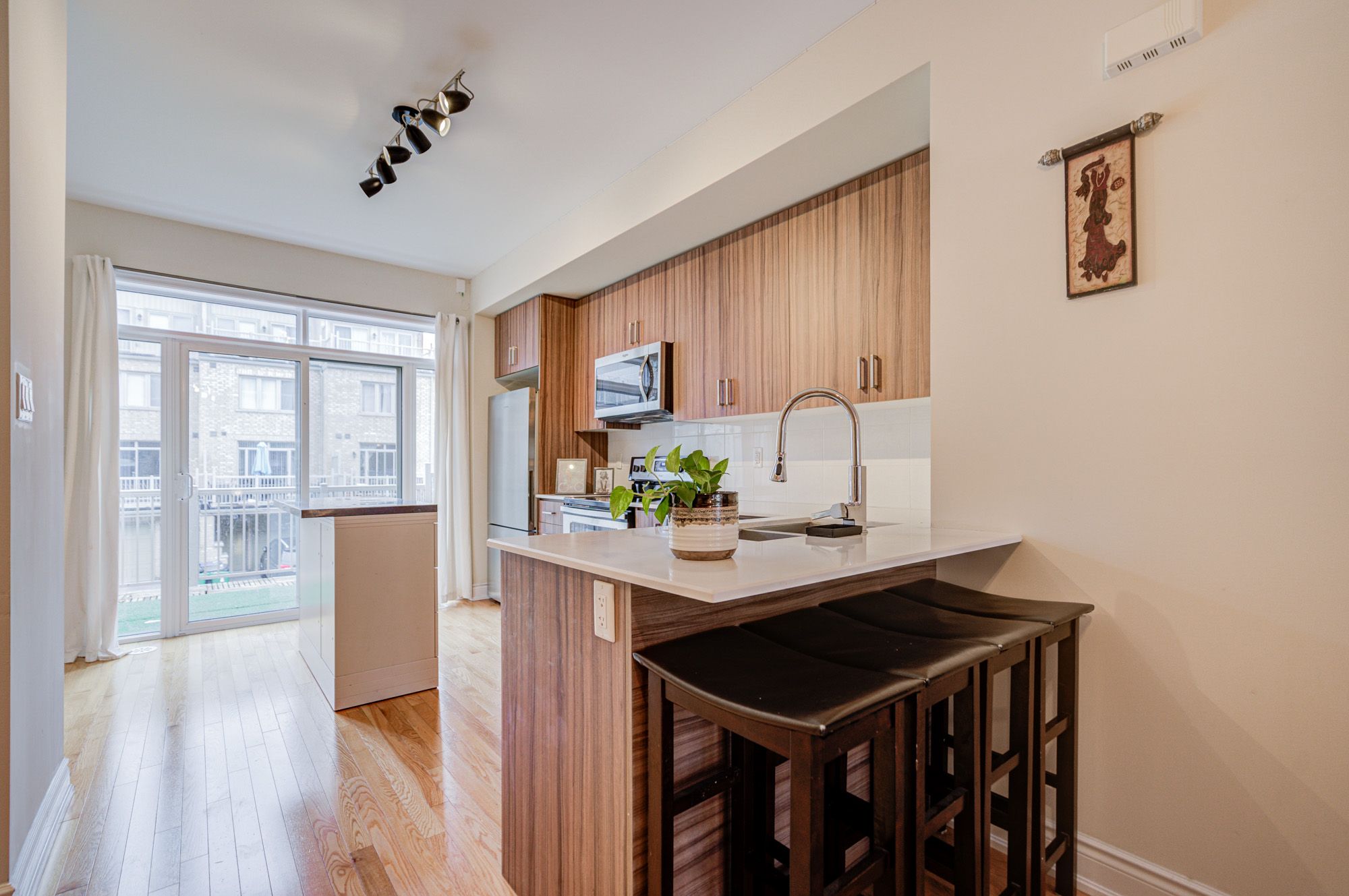 Executive 3Br Town House In Prime Etobicoke, Low maintenance fee , 9 Ft Ceilings & Hardwood Floors, Electric Fireplace In Living room, Stainless Steel Appliances & W/O to Large Balcony, Quartz Counters**Private Master Bedroom Oasis On 3rd Level With Exquisite 5 Pc Soaker Tub Ensuite Bathroom Plus Walk Out To Se Facing Balcony - Perfect For Morning Coffee & Sunrise Gazing**Super Convenient Location - Shops, Schools, Subway, Parks, Cineplex, Great school district including brand new Holy Angels. Easy access to TTC and major routes, GO Train , Shopping (Costco, IKEA, etc.), Restaurants & Amenities, Gardiner & HWY 427 So Much More!