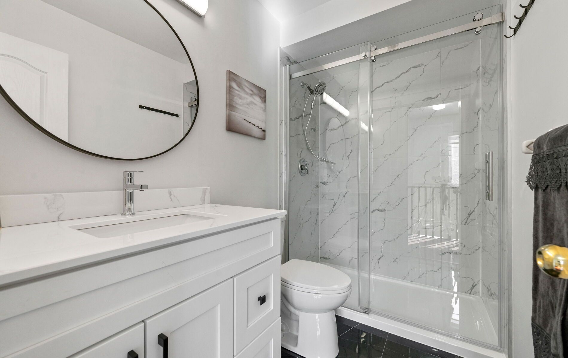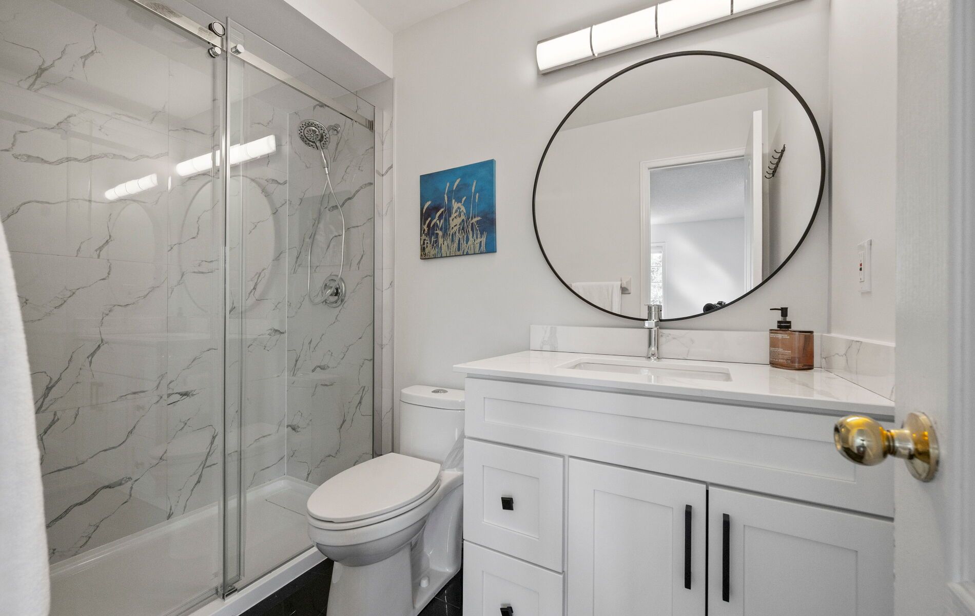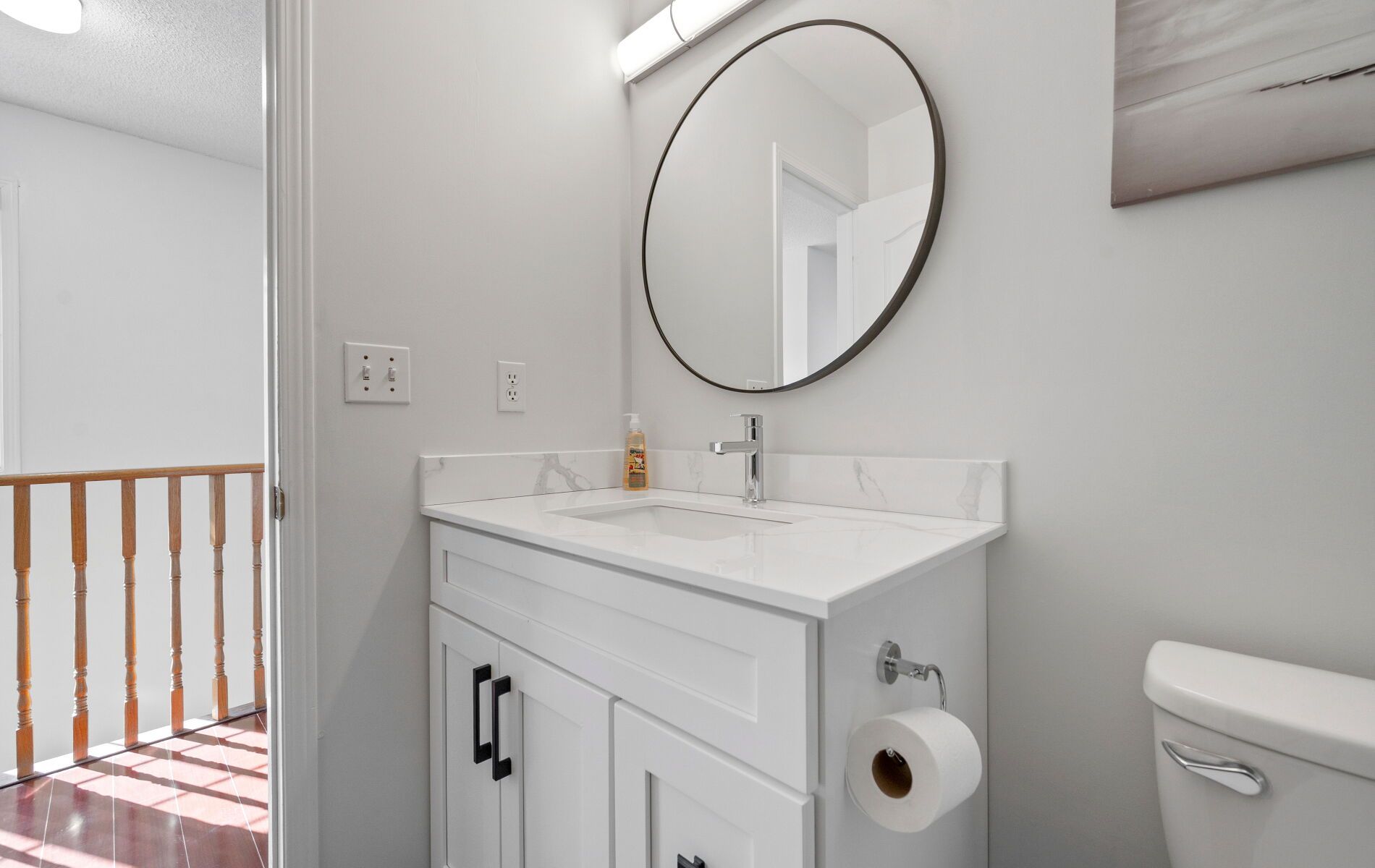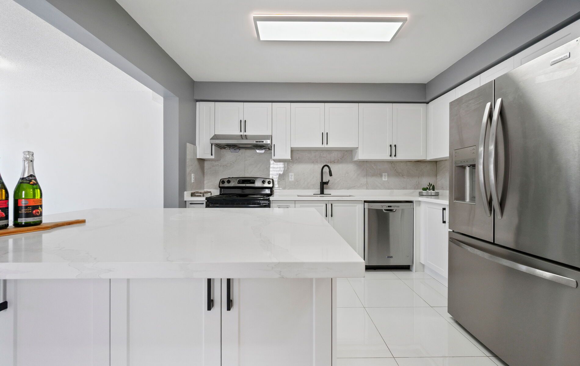 Beautifully renovated and rarely available end-unit townhouse in a highly sought-after community. This sun-filled home has been extensively updated throughout, offering bright, spacious living with modern finishes and exceptional functionality. The open-concept main floor features a cozy gas fireplace and stylish new laminate flooring in the living and dining areas, complemented by new foyer tiles, upgraded LED lighting, elegant zebra blinds, and fresh neutral paint. The upgraded kitchen is designed for both style and practicality, showcasing new quartz countertops, an extended breakfast bar, new lower cabinetry with generous storage including a pull-out spice rack, and an updated double-door refrigerator. Upstairs, the primary bedroom offers a fully renovated ensuite with a modern standing shower and his-and hers closets. A large second-floor loft provides a flexible space ideal for a home office, study, or play area, while two additional bedrooms and a renovated full bathroom complete the upper level, along with new carpeting on the staircase. The finished basement adds versatile living space for a media room, gym, or guest suite. All three washrooms have been fully renovated with contemporary standing showers, new vanities, and updated flooring, along with an updated powder room, making this home truly move-in ready. Ideally located in a family friendly complex with school bus pickup, within walking distance to public transit, groceries, and everyday amenities, and offering easy access to Highway 403 for effortless commuting. This turnkey end-unit townhouse combines modern upgrades, generous space, and a prime location-an outstanding opportunity for today's buyers.