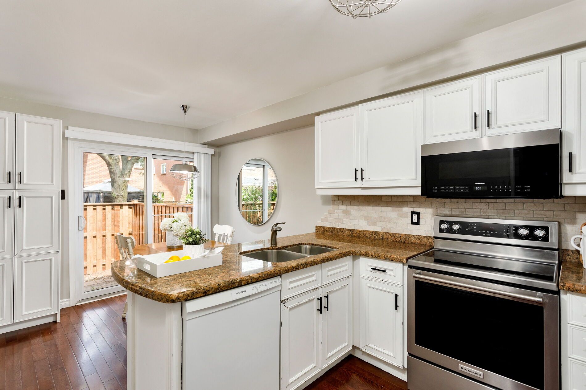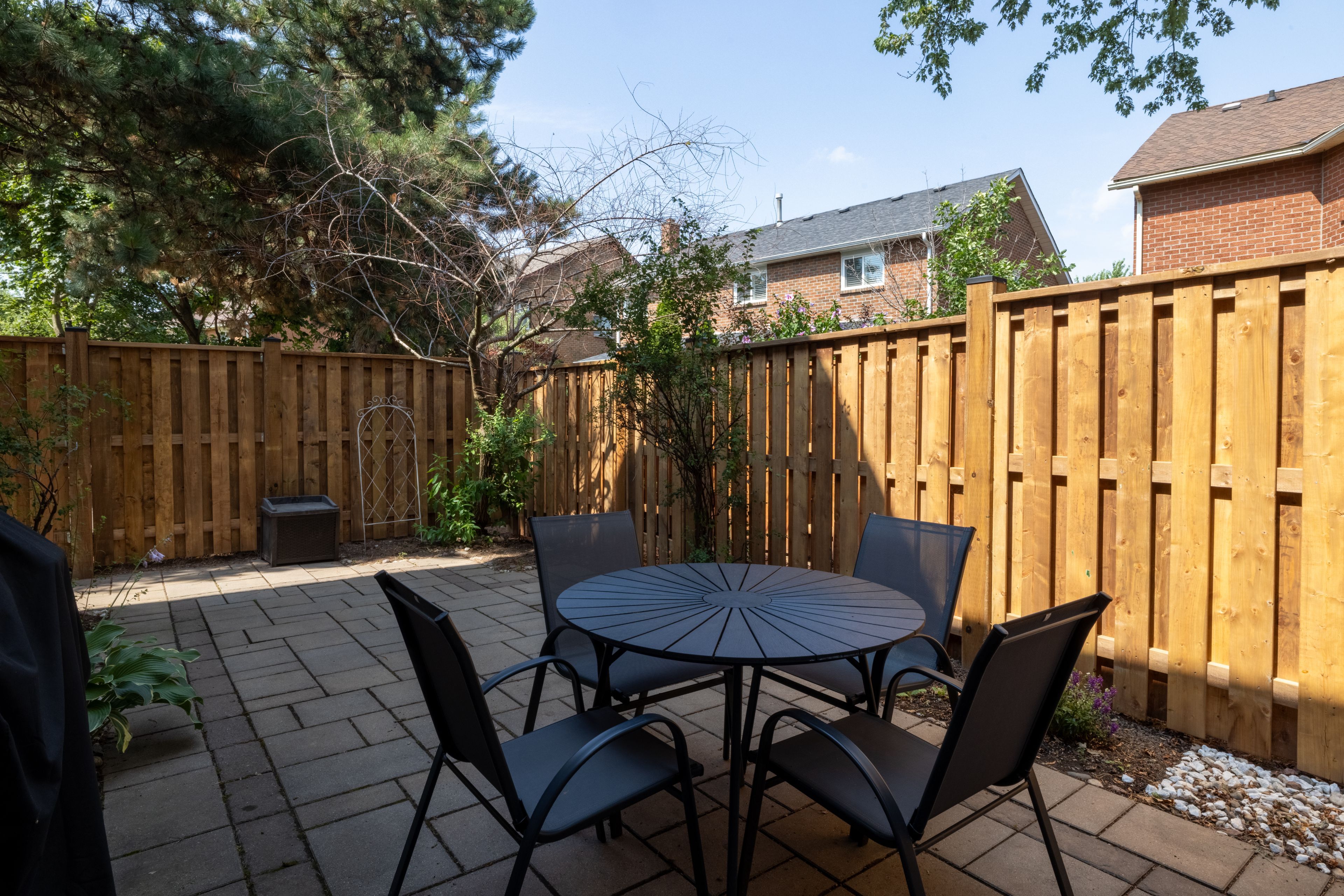 Welcome to this beautifully updated end-unit townhome in Oakvilles desirable Avonlea Estates in Wedgewood Creeka well-managed, upscale condominium complex surrounded by mature trees & professionally landscaped grounds. This residence is within walking distance to parks, trails, top-rated Iroquois Ridge High School, Iroquois Ridge Community Centre, & the Upper Middle Shopping Plaza, with easy access to the QEW, 403, Uptown Core, Park & Ride, & Outlet Mall. Offering approximately 2,134 sq. ft. plus a professionally finished basement, this spacious 4-bedroom, 2.5-bathroom home features recent upgrades (2022), including wide-plank engineered hardwood on the second floor & a dark-stained staircase from the main floor to the second level. The upper level sitting room was converted to a 4th bedroom (no closet), new cordless blinds added, updated light fixtures, & floor vents replaced. This bright corner unit boasts a large stone patio in a fully fenced yard with mature trees for privacy. Extra windows throughout allow abundant natural light, & the main floor features cherry hardwood flooring & French doors. Excellent, versatile floor plan to configure to suit your needs, with a formal living room & separate dining room, a family room with a wood-burning fireplace, a powder room, inside entry to the garage, & a white kitchen with granite countertops, a breakfast bar, & a breakfast room with a walkout to the serene backyard. Upstairs offers 4 bedrooms, 2 full bathrooms & a charming loft overlooking the staircase. The spacious primary suite features a 5-piece ensuite bath with a soaker tub & separate shower. Downstairs, pot lights, wide-plank laminate floors, a spacious recreation room, & a dedicated exercise roomcreate the ideal setting for modern family living in a prime Oakville location.