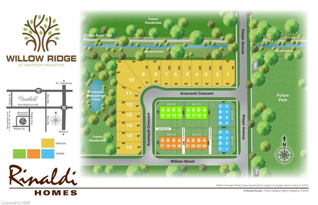 Welcome to 200 Klager Ave a breathtaking 2005 sq ft freehold corner unit townhome. As soon as you finish admiring the stunning modern architecture finished in brick & stucco step inside to enjoy the incredible level of luxury only Rinaldi Homes can offer. The main floor living space offers 9 ft ceilings with 8 ft doors, gleaming engineered hardwood floors, pot lights throughout, custom window coverings, a luxurious kitchen with soft close doors/drawers & cabinets to the ceiling, quartz countertops, a panelled fridge & dishwasher, 30" gas stove & a servery/walk-in pantry, a spacious living room, large dining room, a 2 piece bathroom and sliding door access to a gorgeous covered deck complete with composite TREX deck boards, privacy wall and Probilt aluminum railing with tempered glass panels. The second floor offers a loft area (with engineered hardwood flooring), a full 5 piece bathroom with quartz countertop, separate laundry room with front loading machines, a serene primary bedroom suite complete with its own private 4 piece ensuite bathroom (including a quartz countertop, tiled shower with frameless glass) & a large walk-in closet with custom closet organizer, and 2 large additional bedrooms (front bedroom includes a walk in closet). Smooth drywall ceilings in all finished areas. Triple glazed windows are standard in all above grade rooms. The basement features a deeper 8'4" pour, vinyl plank flooring, a 4th bedroom, 3pc bathroom and a Rec Room. 13 seer central air conditioning unit and flow through humidifier on the forced air gas furnace included. Sod, interlock brick walkway & driveways, front landscaping included. Located across the street from the future neighbourhood park. Only a short walk to downtown, shopping, restaurants & the Steve Bauer Trail. Easy access to world class golf, vineyards, the QEW & 406. 30 Day closing available - Buyer agrees to accept builder selected interior and exterior finishes.