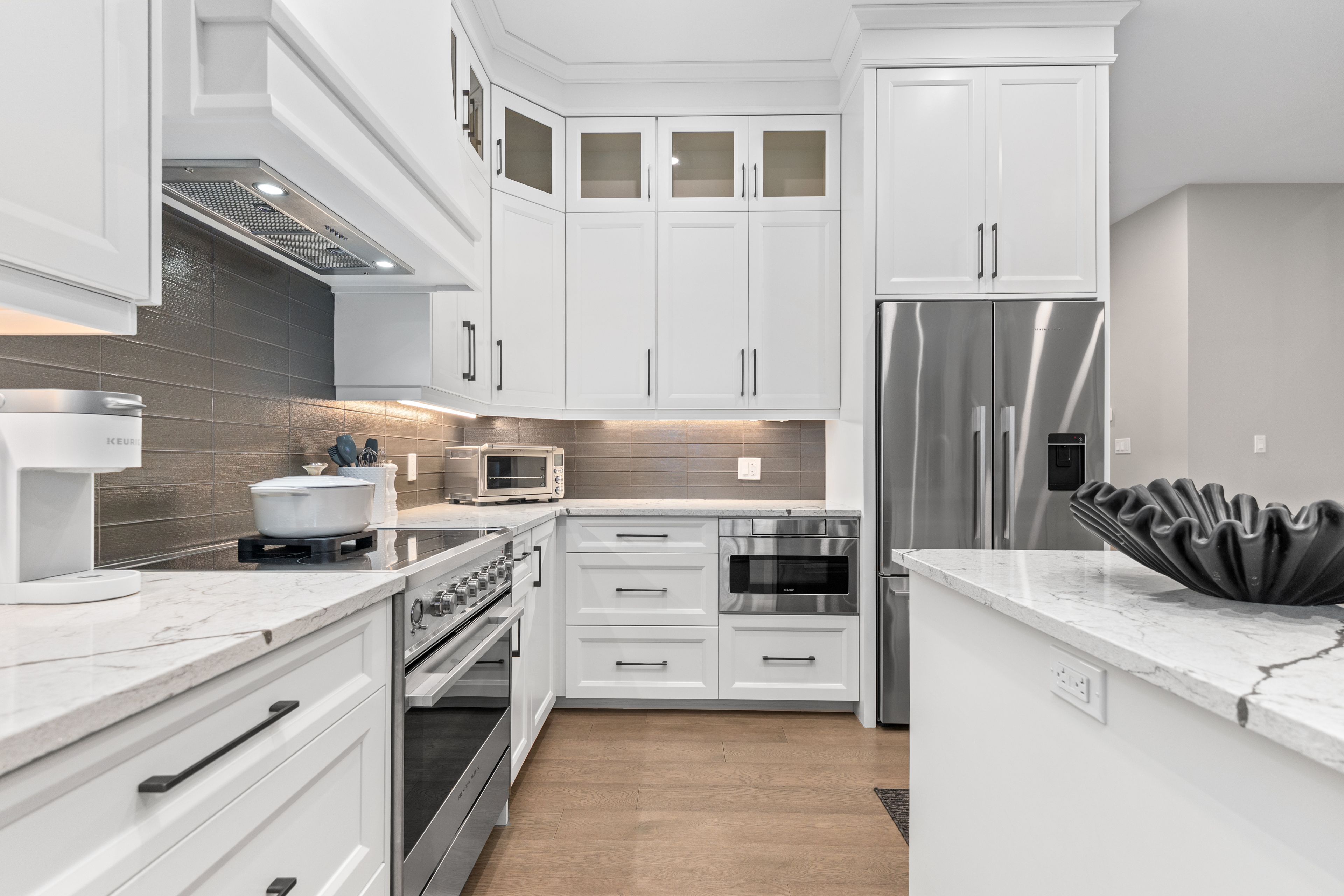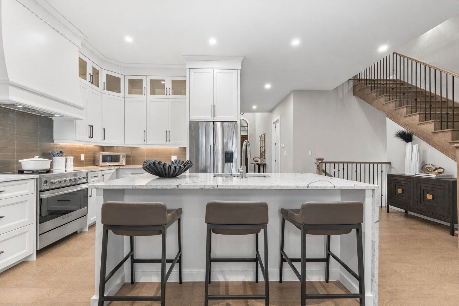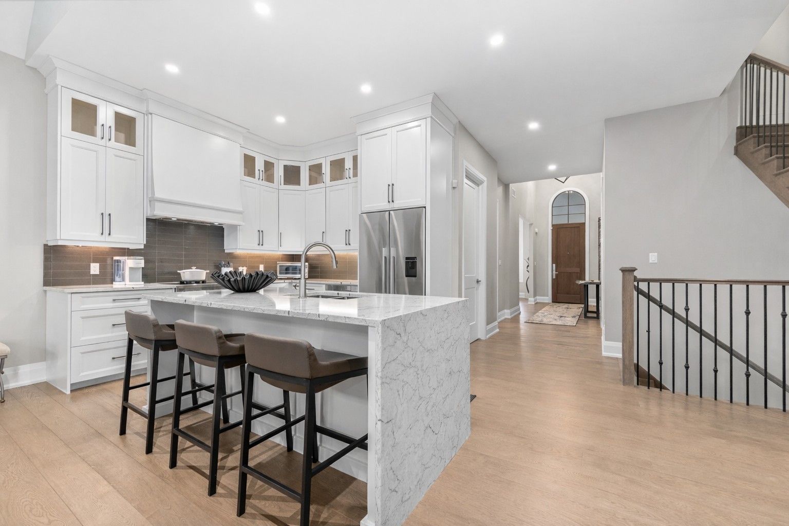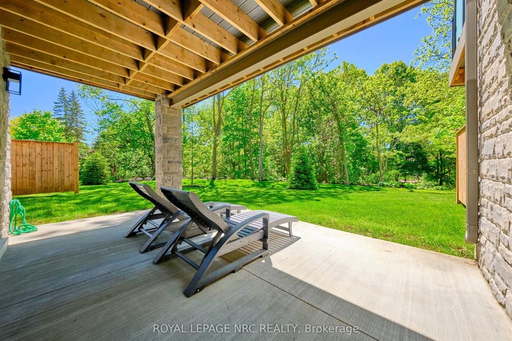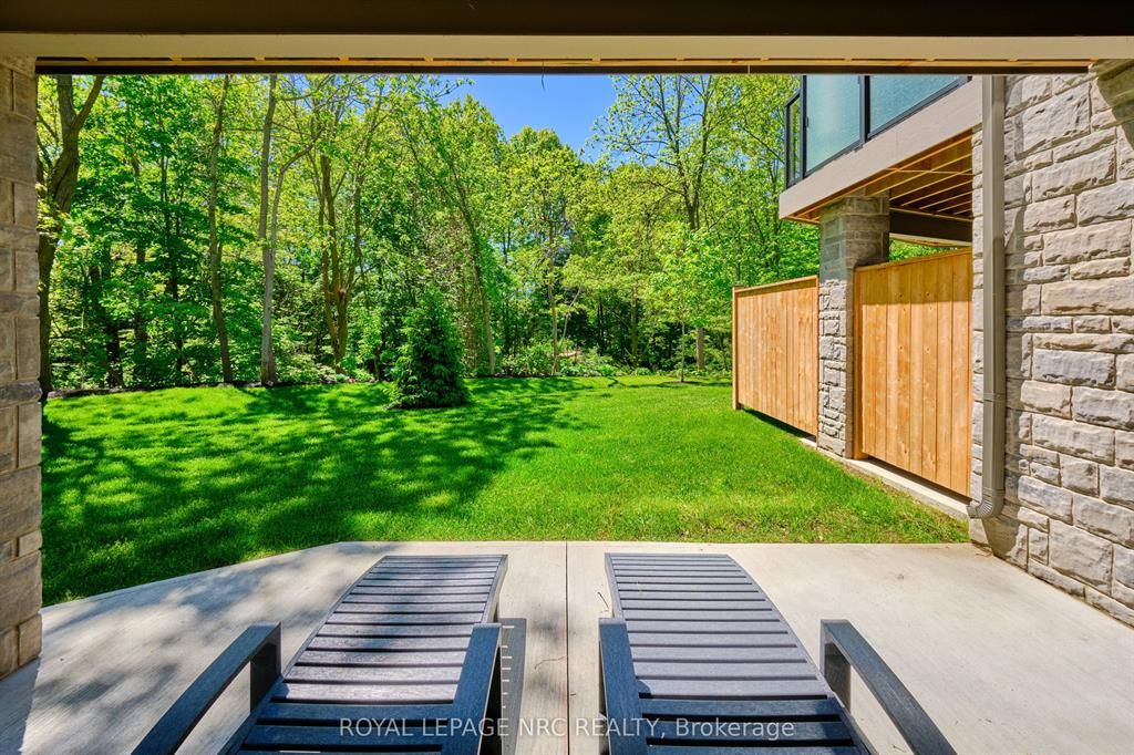 Ohh La La! Welcome to Fonthill's most exclusive enclave of luxury townhomes 'Canboro Hills' - where elegance, privacy and tranquility meet. Built by the acclaimed DeHaan Homes, this exceptional Tintern Model offers 3 bedrooms, 3.5 baths and 2,774 (+/-) sq. ft. of refined above-grade living space, plus a fully finished walk-out lower level, all enhanced by upscale finishes throughout. Perfectly positioned at the quiet rear of the community, this residence enjoys serene ravine views and remarkable privacy, beautifully blending luxury living with nature. A striking entrance welcomes you defined by soaring 10-ft ceilings, gleaming porcelain tile, engineered hardwood, designer pot lighting, elegant 7.25" baseboards, 8-ft doors and premium fixtures, creating a warm yet sophisticated atmosphere. The dining room impresses with a dramatic 15-ft vaulted ceiling, while the chef-inspired custom kitchen showcases Fisher & Paykel appliances, induction range, stunning quartz countertops and a generous walk-in pantry. The spectacular Great Room features an impressive 18-ft vaulted ceiling, anchored by a sleek 60" linear gas fireplace with custom built-ins, creating a stunning focal point.The primary suite is a peaceful sanctuary with a spa-inspired 5-piece ensuite. A stylish powder room with full linen closet and a spacious mudroom/laundry with built-in bench complete the main level. Ascend the elegant white oak staircase to the upper loft where guests enjoy a generous bedroom with walk-in closet and private 3-piece ensuite.The finished walk-out lower level expands the living space with a large recreation room with electric fireplace, an additional bedroom with walk-in closet and 3-piece bath. Outdoor living is equally impressive with peaceful ravine views from the covered balcony with composite decking, glass privacy wall and gas line, while the lower concrete patio offers another private outdoor retreat. Luxury, privacy and timeless design refined Fonthill living at its finest.