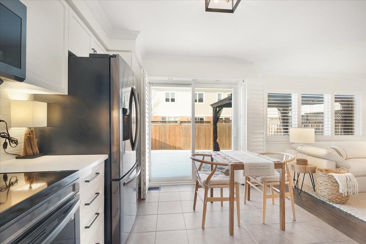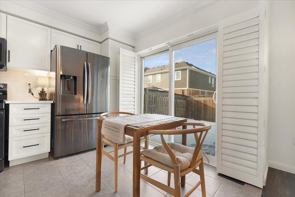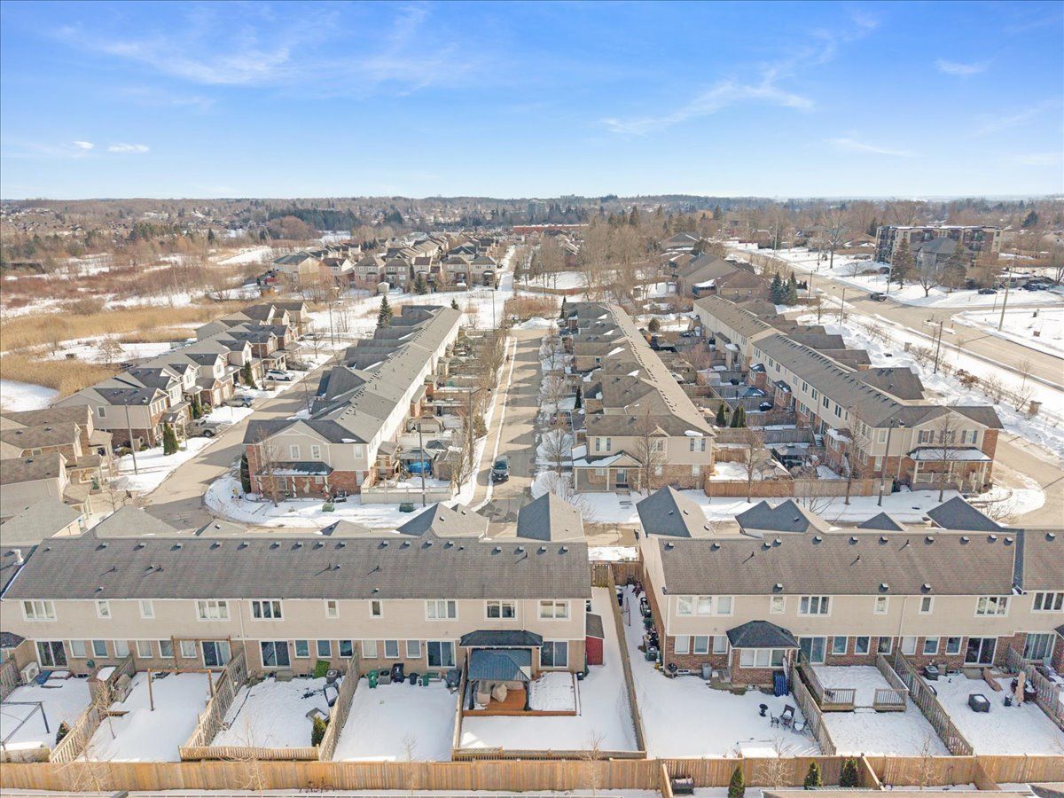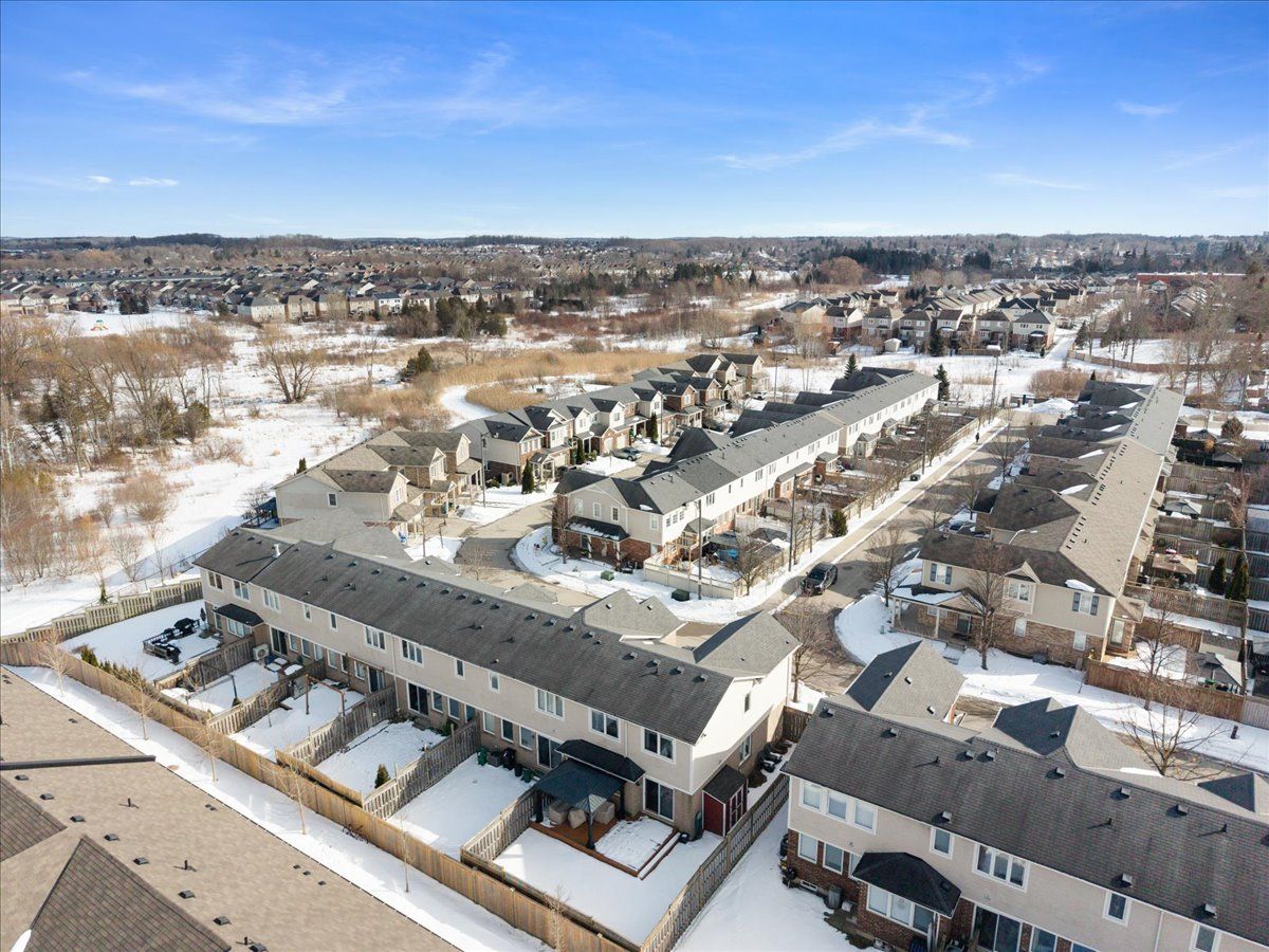 Welcome to this beautifully maintained 3-bedroom, 2.5-bath end-unit townhouse located in the heart of Cambridge. Offering exceptional space, comfort, and style, this move-in-ready home showcases numerous upgrades and refined finishes throughout. The bright open-concept main floor is ideal for both everyday living and entertaining, featuring upgraded laminate flooring throughout all levels, spacious living and dining areas enhanced with elegant crown moulding, and timeless California shutters on mainfloor. The upgraded kitchen is both stylish and functional, complete with quality countertops, ample cabinetry, a classic subway-tiled backsplash, and upgraded black stainless steel appliances. Upstairs, you'll find three generously sized bedrooms, including a spacious primary retreat with a private en-suite bath and walk-in closet. The fully finished basement provides valuable additional living space, perfect for a recreation room, home office, gym, or media area, all finished with upgraded laminate flooring for a seamless, modern look. Step outside to your private backyard oasis featuring a beautiful deck and gazebo, ideal for summer gatherings or relaxing evenings outdoors. Additional highlights include a single-car garage with private driveway parking. Conveniently located close to schools, parks, shopping, Highway 401 and major commuter routes, this exceptional home truly checks all the boxes.