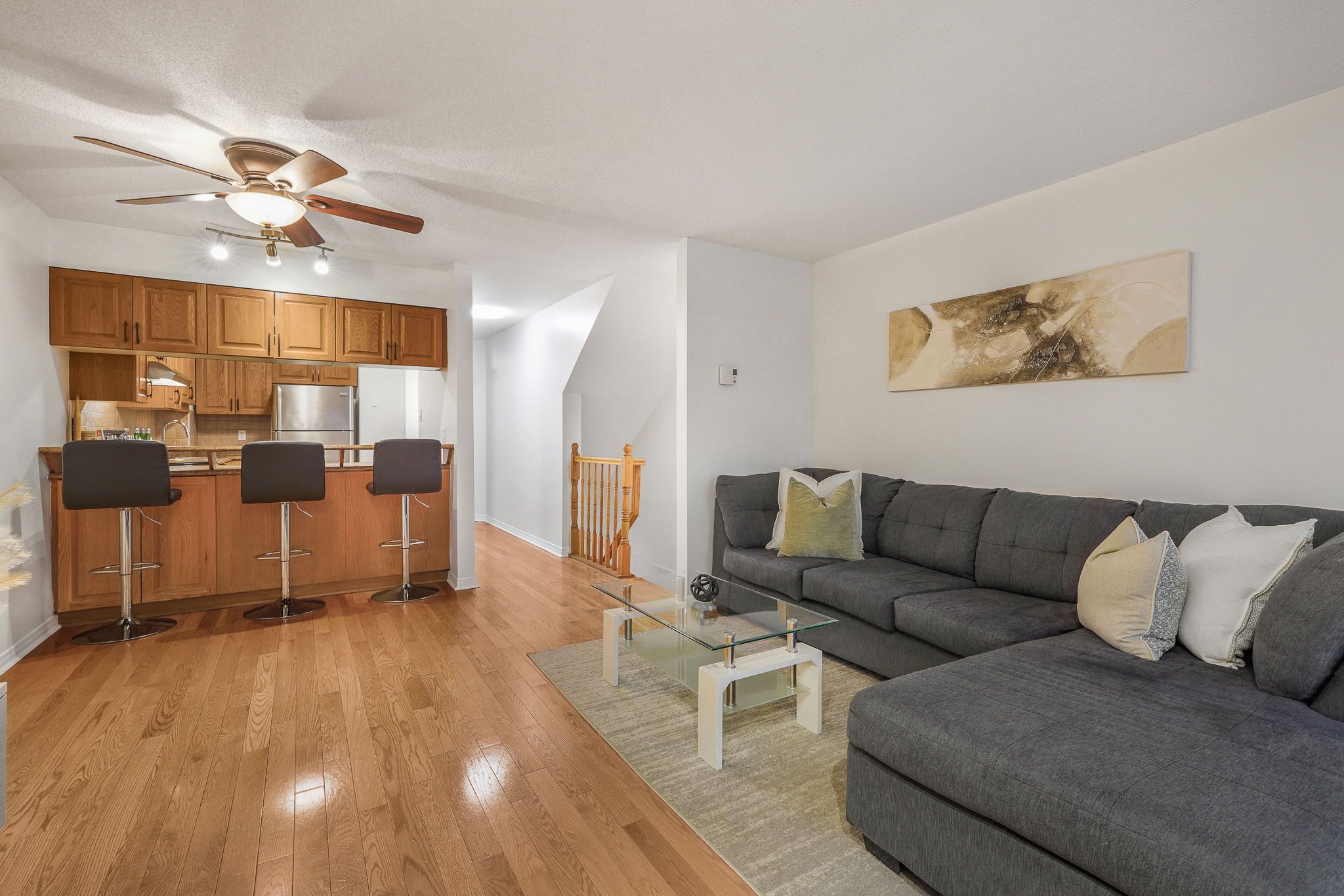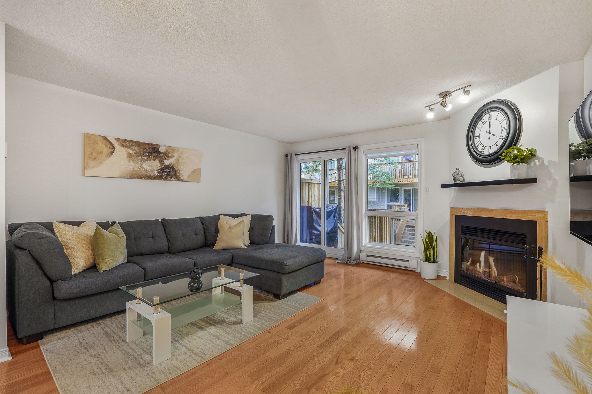 OPEN HOUSE Sun Apr 19, 2-4pm. Step into a standout opportunity in the heart of Hunt Club-where location, lifestyle, and smart design come together to set this stacked condo townhouse apart from the rest. Perfectly positioned within walking distance to public transit, shopping, and green space including Elizabeth Manley Park, Winterwood Park, and Conroy Pit, this home offers the convenience today's buyers are searching for. From the charming covered front porch to the thoughtfully designed interior, every detail has been curated for comfort and everyday ease. The main level welcomes you with a spacious foyer and flows into a bright, open-concept layout filled with natural light, featuring carpet-free living with hardwood flooring and a hardwood staircase for a clean, modern feel. The kitchen is both stylish and functional, offering generous cabinetry, pot drawers, a breakfast bar, and all appliances included, seamlessly connecting to the inviting living room highlighted by a cozy fireplace and patio doors leading to your outdoor space-perfect for summer BBQs and relaxed evenings. A convenient 2-piece bathroom completes this level. Downstairs, you'll find a well-designed retreat with a spacious South-facing primary bedroom offering abundant closet space, a versatile second bedroom, and a full 4-piece bathroom. In-suite laundry, a utility room, and additional storage add to the home's practicality. Step outside to enjoy a patio area ideal for entertaining or unwinding, along with one dedicated parking space. Bright, modern, and exceptionally well located, this home delivers incredible value in a competitive market-an ideal choice for buyers looking to secure a move-in ready property with lifestyle appeal and long-term potential.